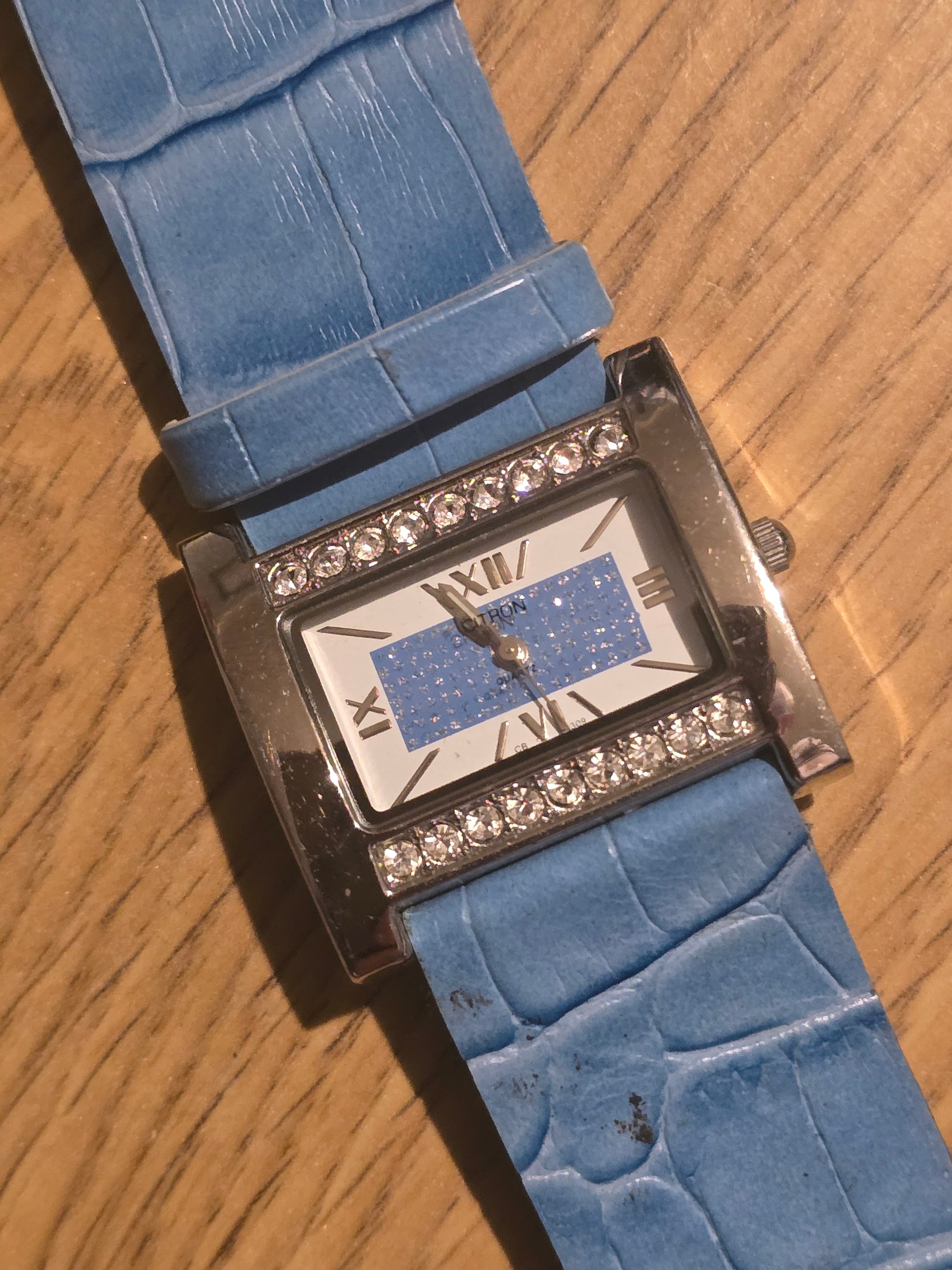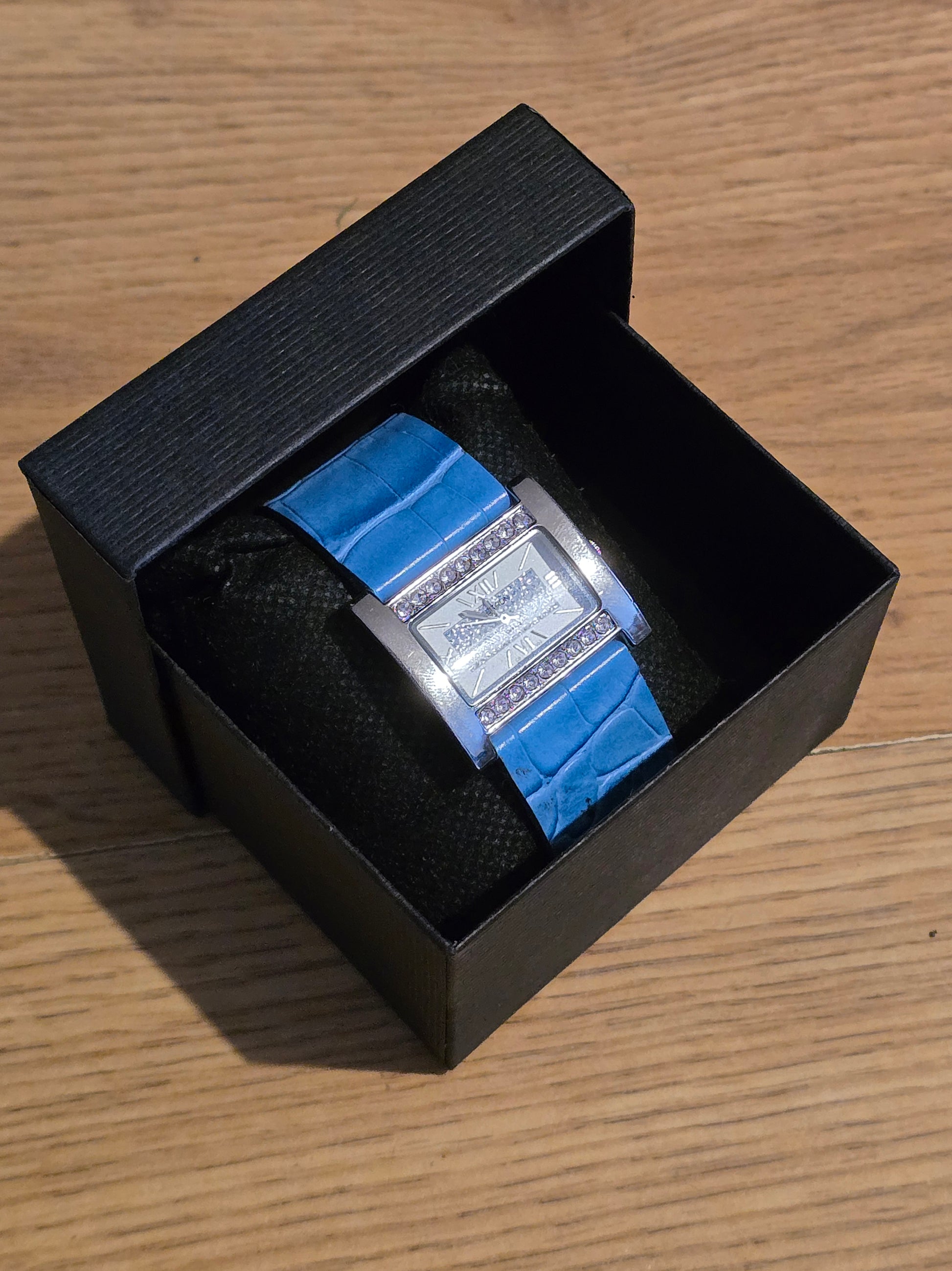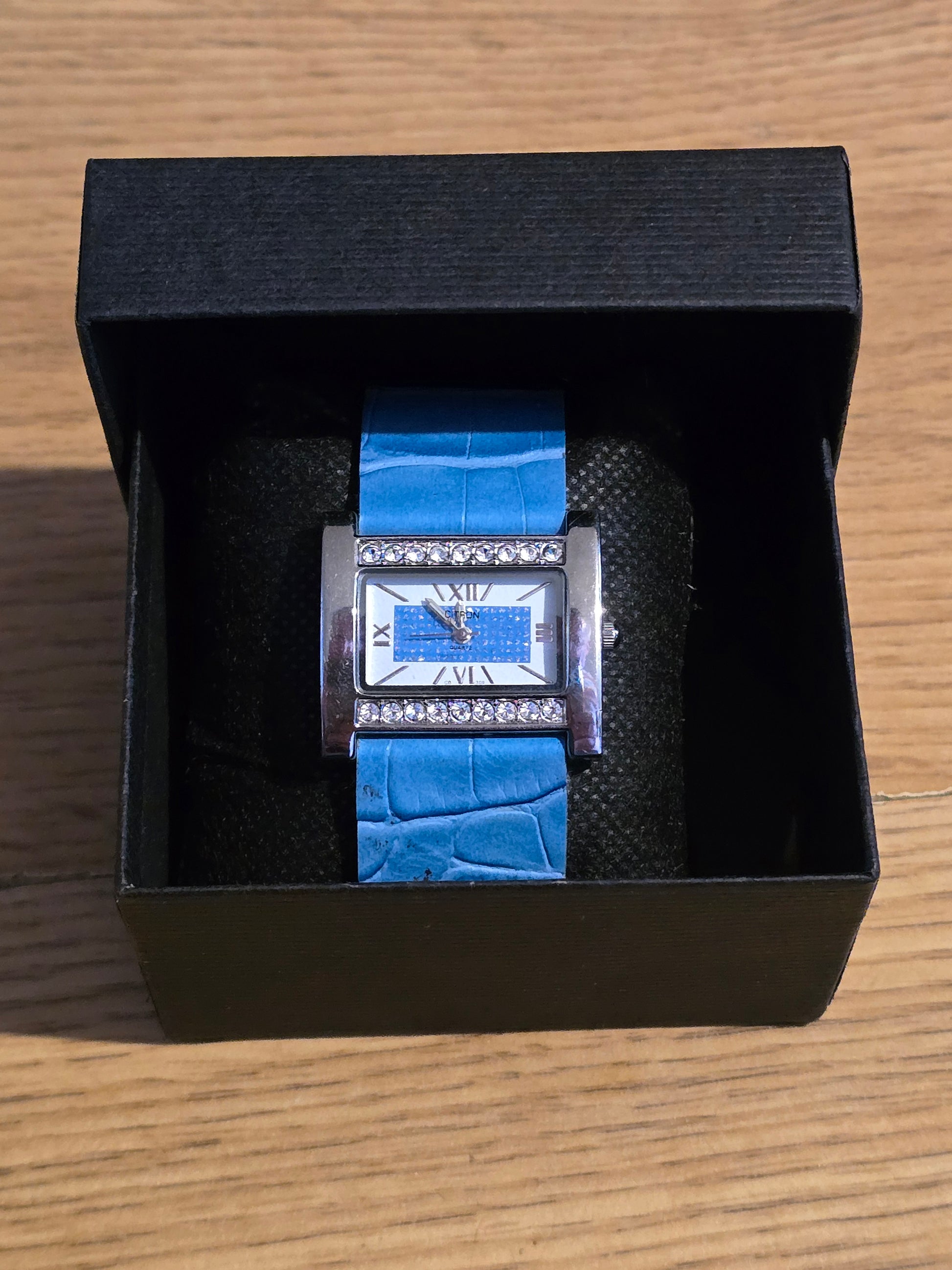 This unique Citron Ladies Dress Watch boasts an unusual design and a vibrant blue strap with a matching inner face. Coupled with its reliable Quartz movement and recently fitted new battery, it is not only stylish but also ensures reliable timekeeping. Perfect for any fashion-forward individual.