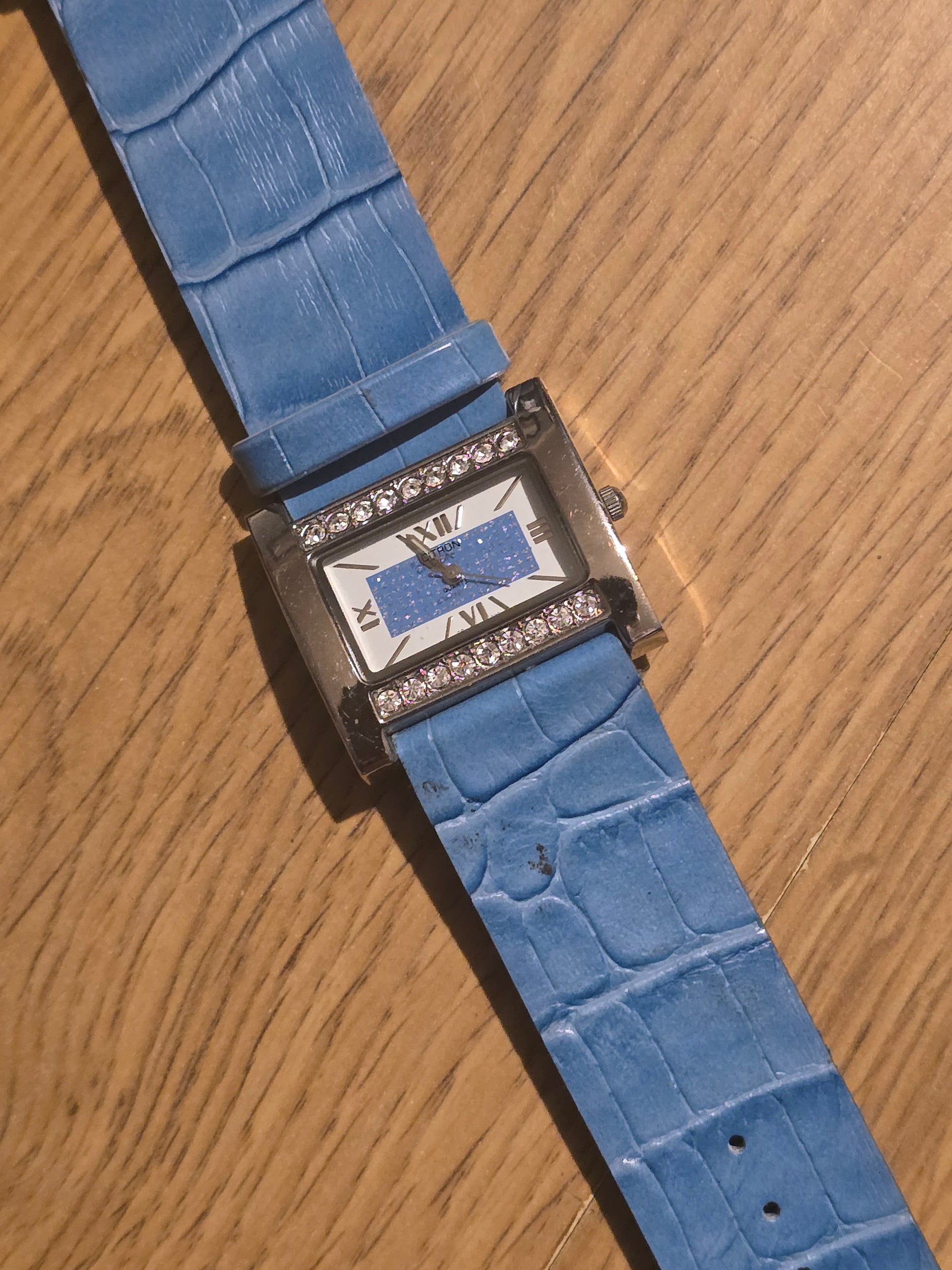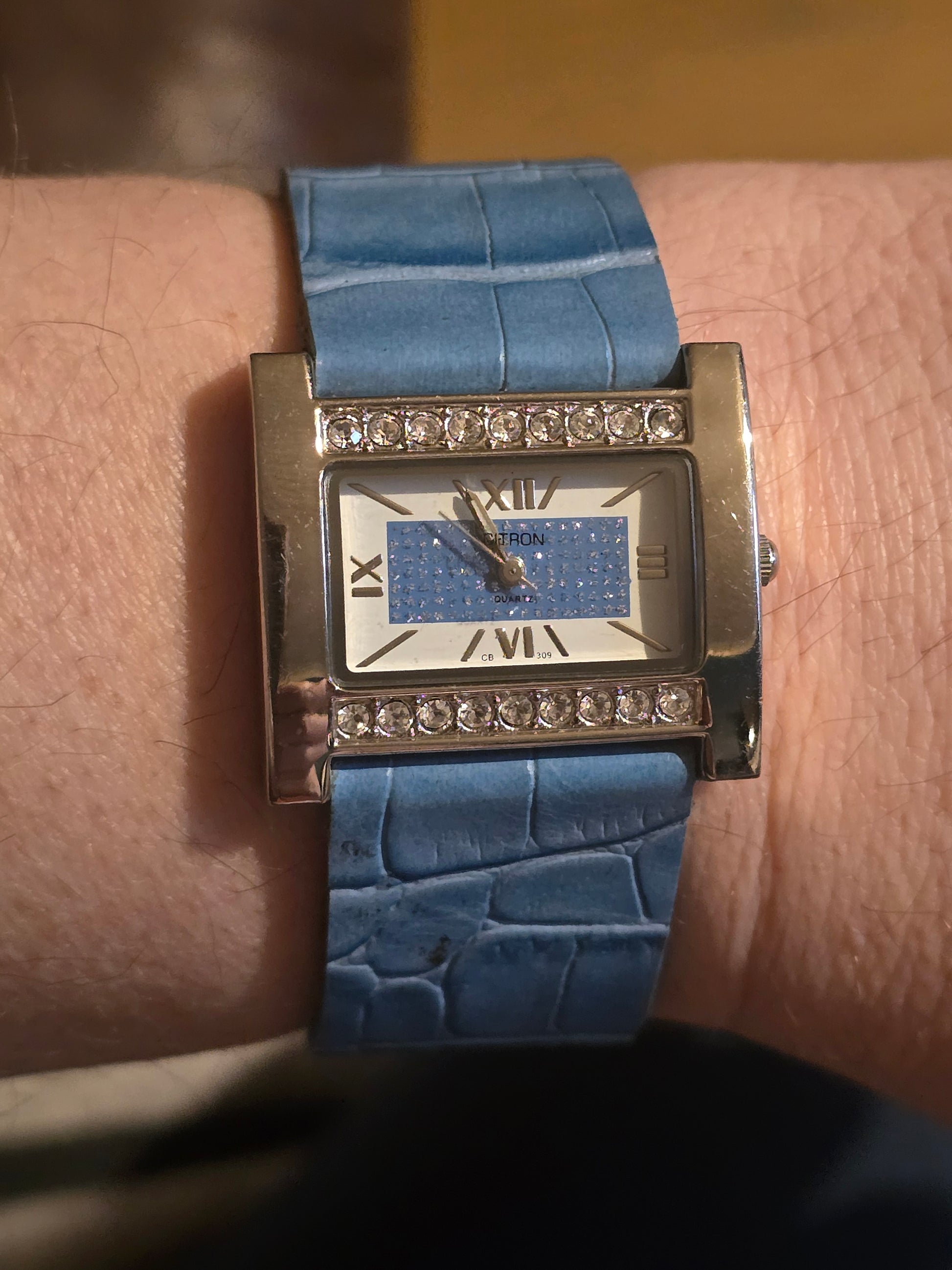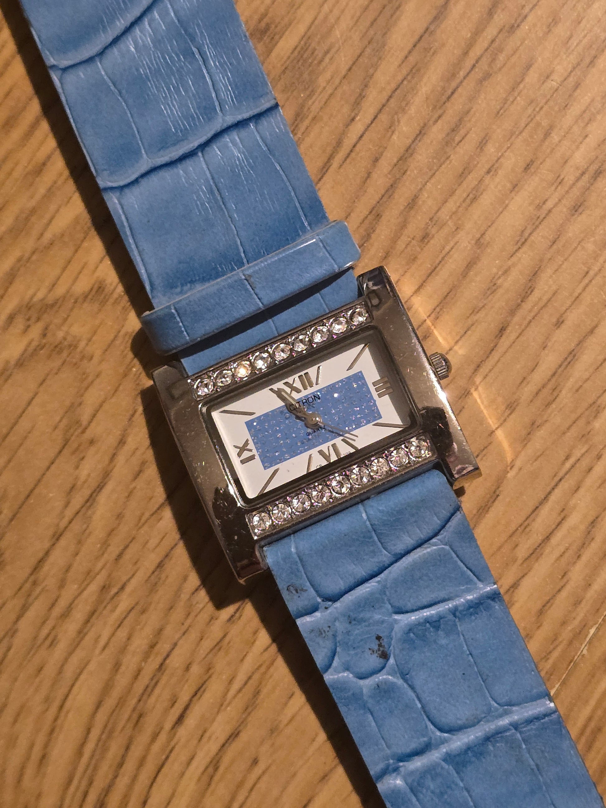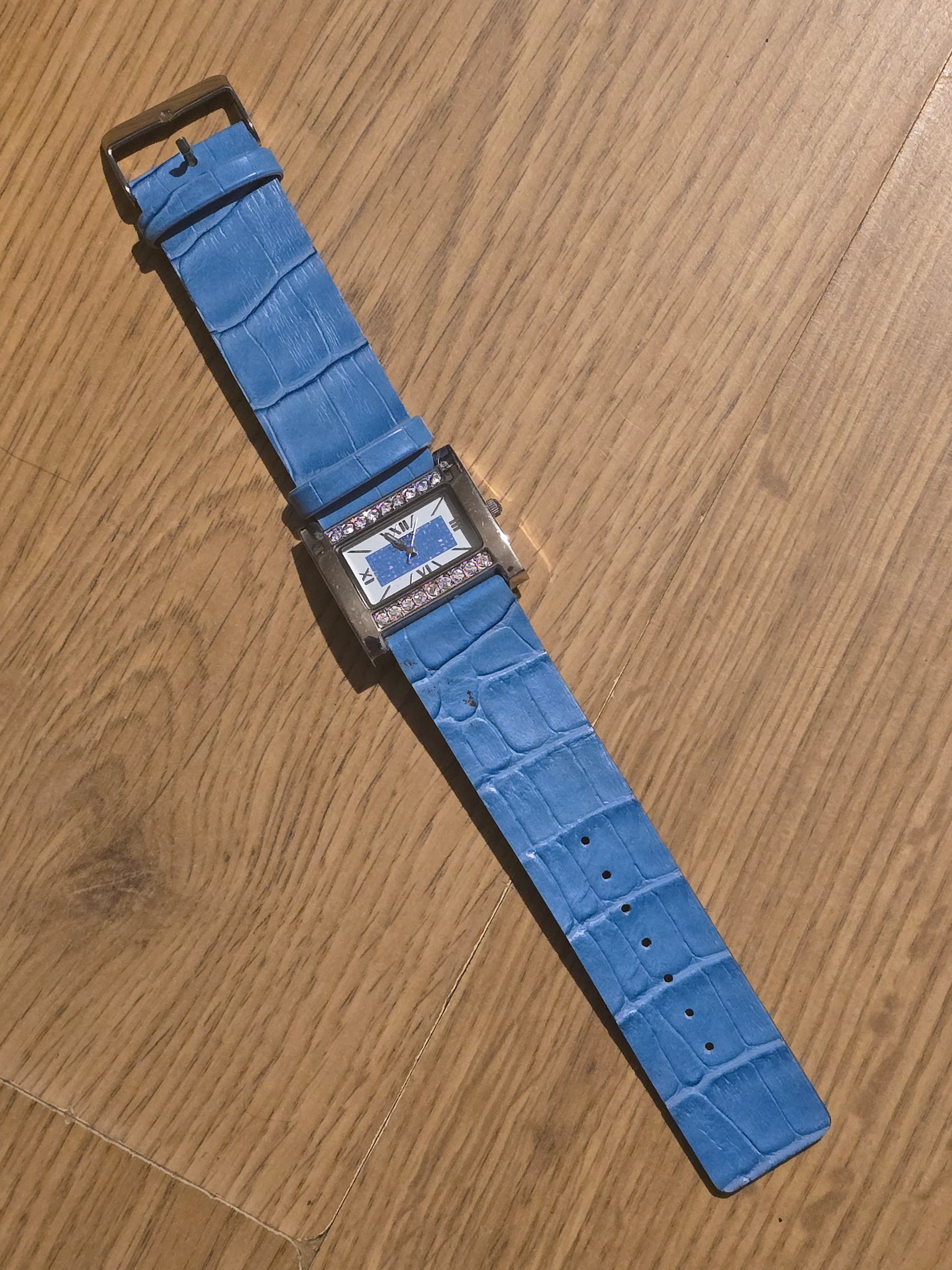 This unique Citron Ladies Dress Watch boasts an unusual design and a vibrant blue strap with a matching inner face. Coupled with its reliable Quartz movement and recently fitted new battery, it is not only stylish but also ensures reliable timekeeping. Perfect for any fashion-forward individual.