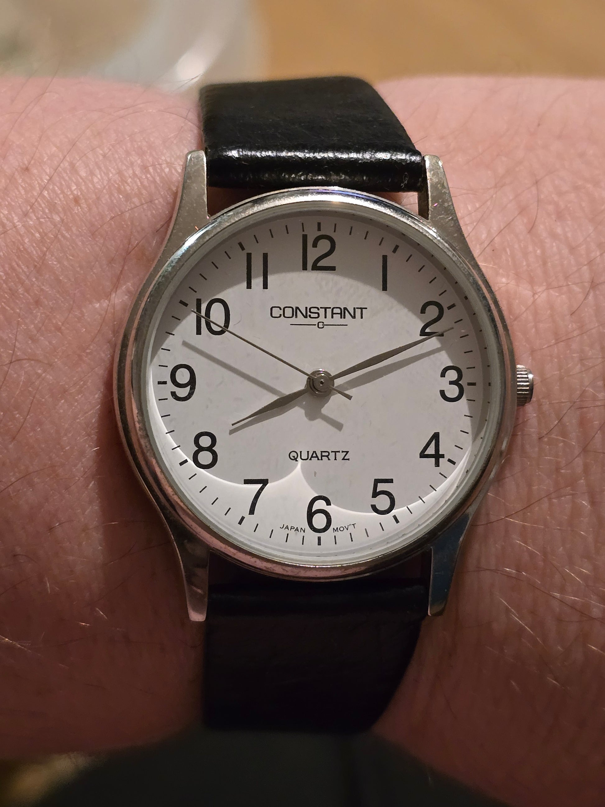 Introducing a timeless piece of elegance - the Constant Ladies Quartz Watch. This pre-owned beauty boasts a classic design and reliable Quartz Movement, making it the perfect accessory for any occasion. With its genuine leather strap and new battery, it's a must-have for any sophisticated woman.