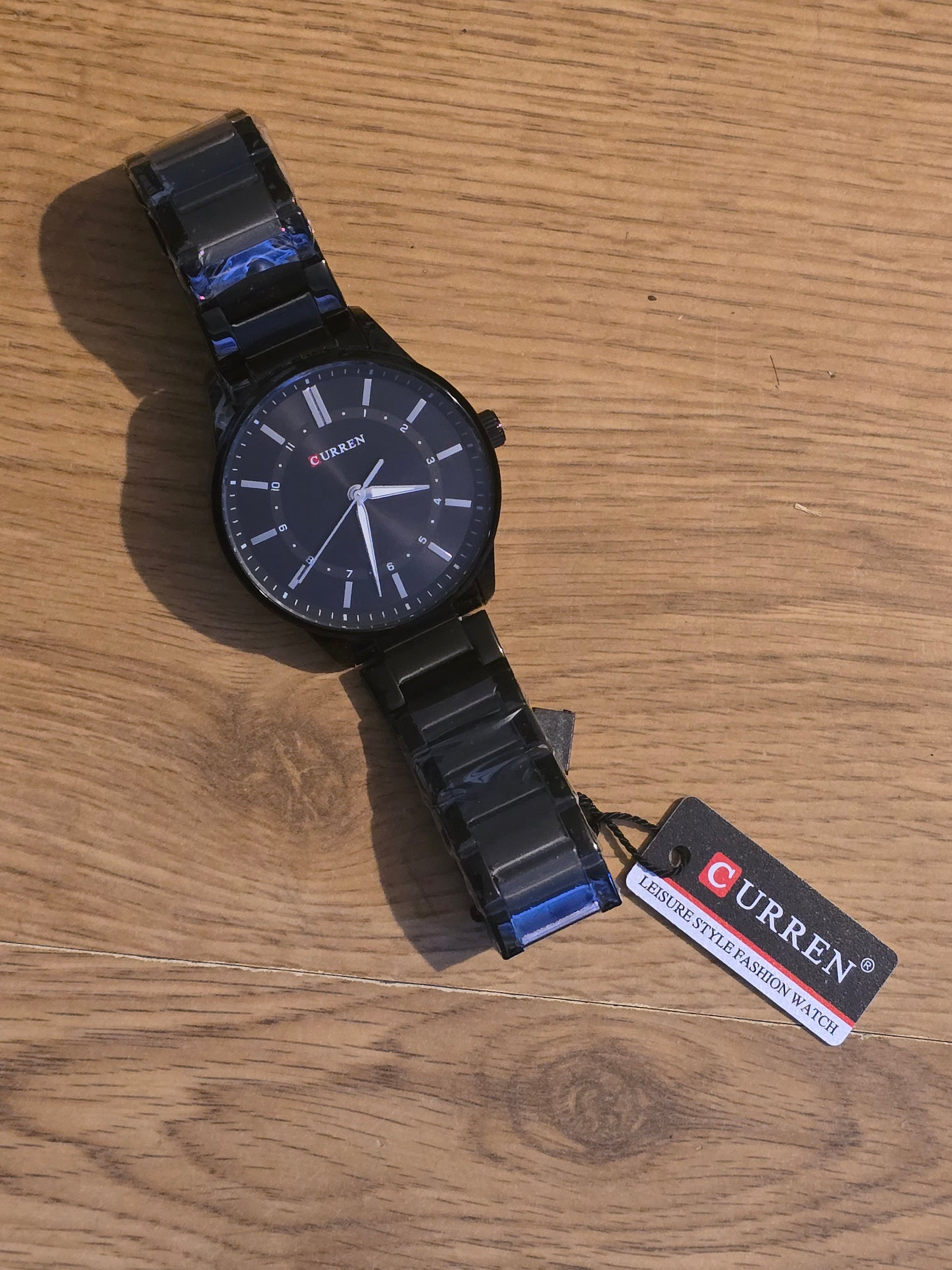 "Embrace boldness with the Curren Men's Black Quartz Watch. With a modern design and reliable Quartz Movement, this timepiece will be your durable companion for any adventure. Featuring a sleek stainless steel strap, it's the perfect combination of style and function."