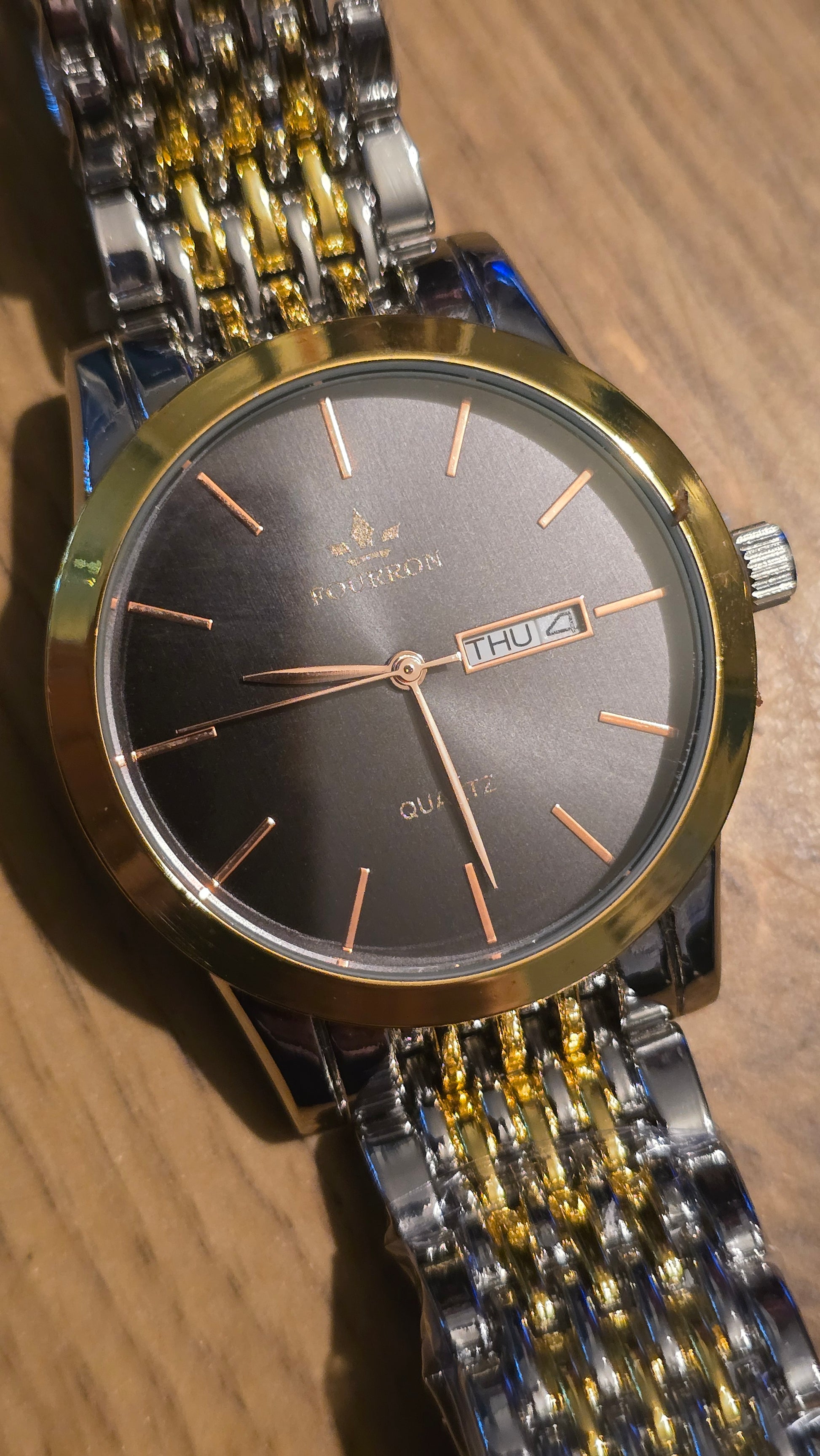 Indulge in timeless elegance with the Fourron Mens Bi-Colour Quartz Watch. Its classic design and sophisticated looks are complemented by a reliable Quartz Movement, ensuring accurate timekeeping. Crafted with a durable stainless steel strap, this watch is the perfect blend of style and functionality. Elevate your accessory game with this premium timepiece.