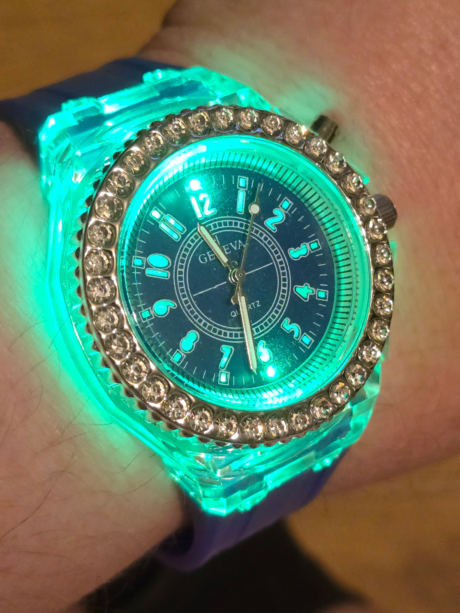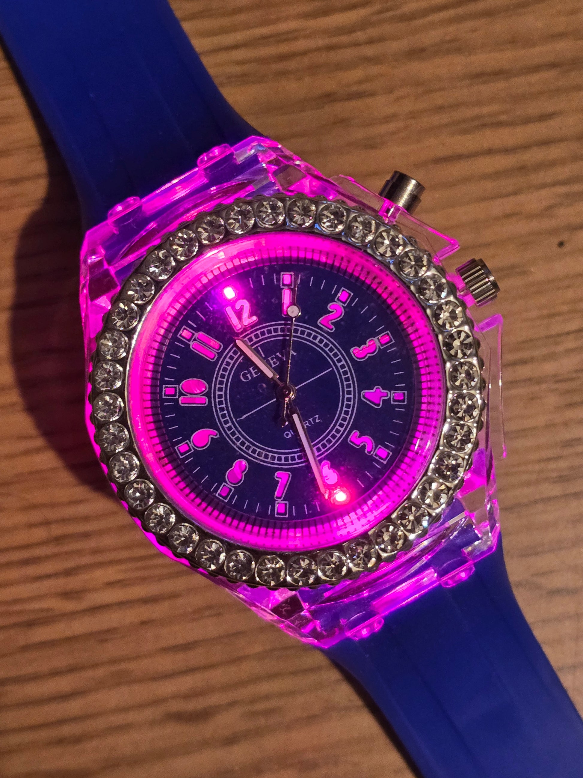 "Get ready to elevate your style with the Geneva Unisex Multi-coloured LED Quartz Watch. This modern timepiece boasts a durable silicone strap and multi-coloured LED casing that's sure to turn heads. With reliable Quartz Movement, this unisex watch is suitable for anyone looking to make a statement."