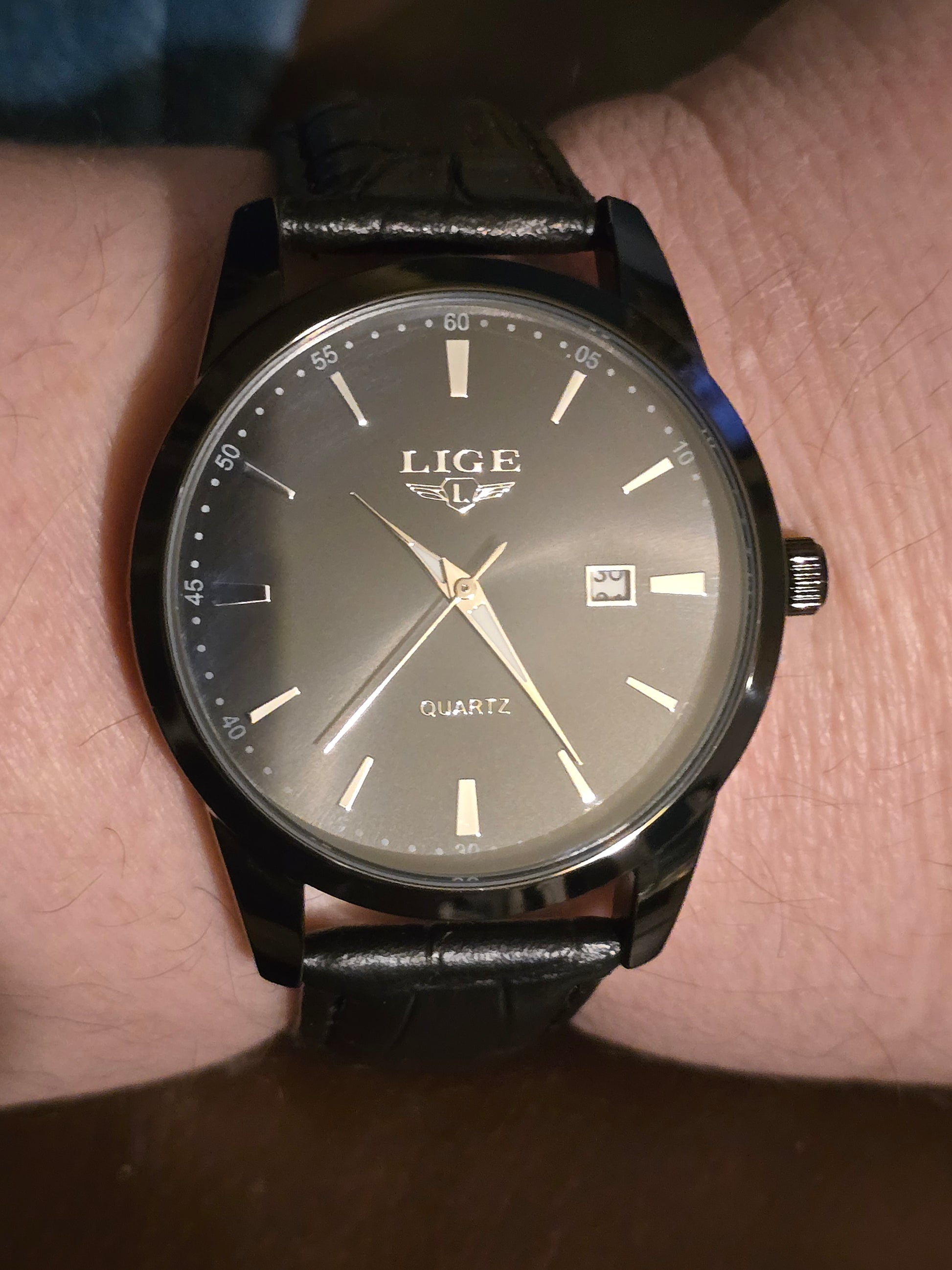 Lige Black Mens Quartz Watch - New - 1