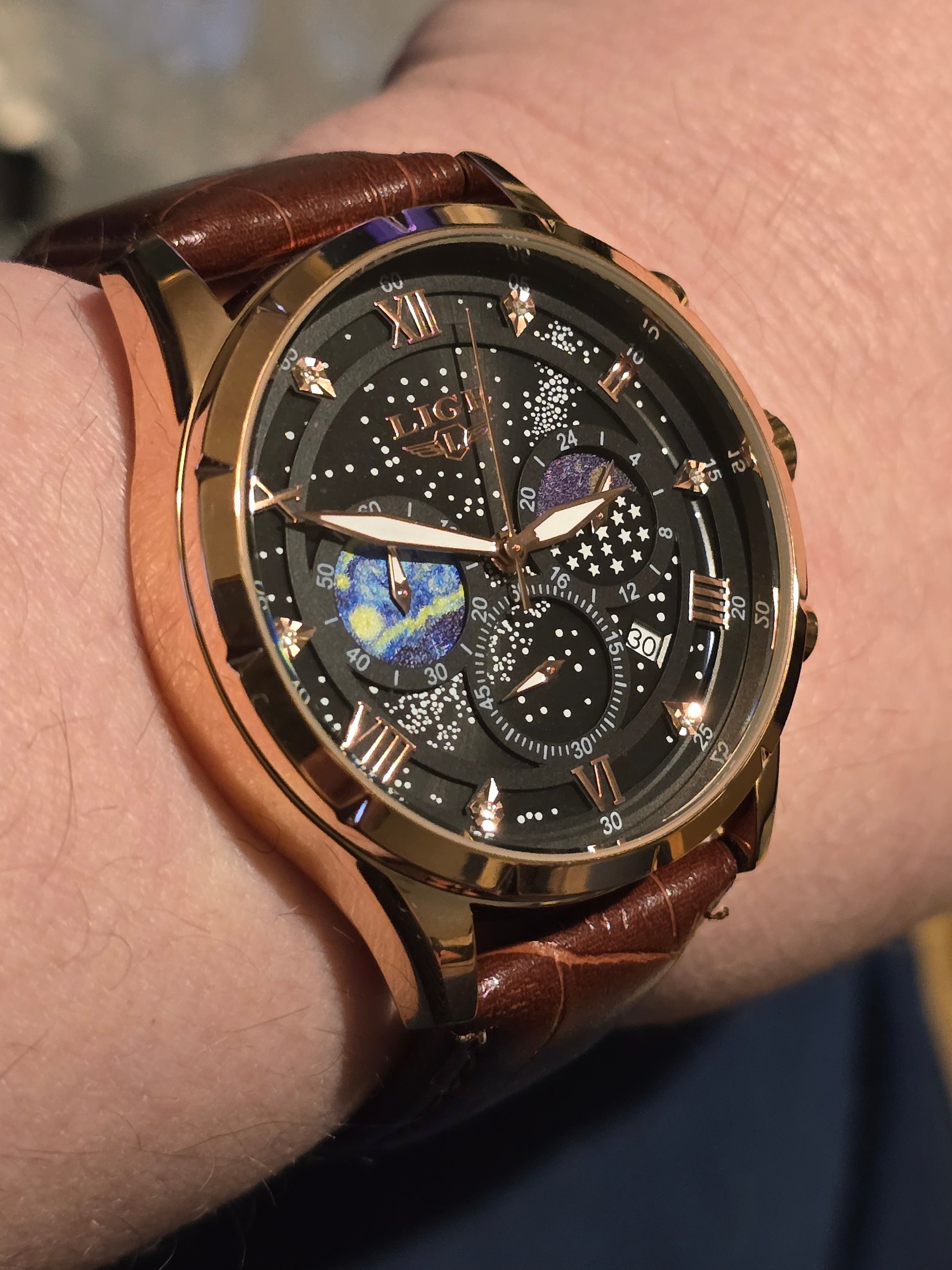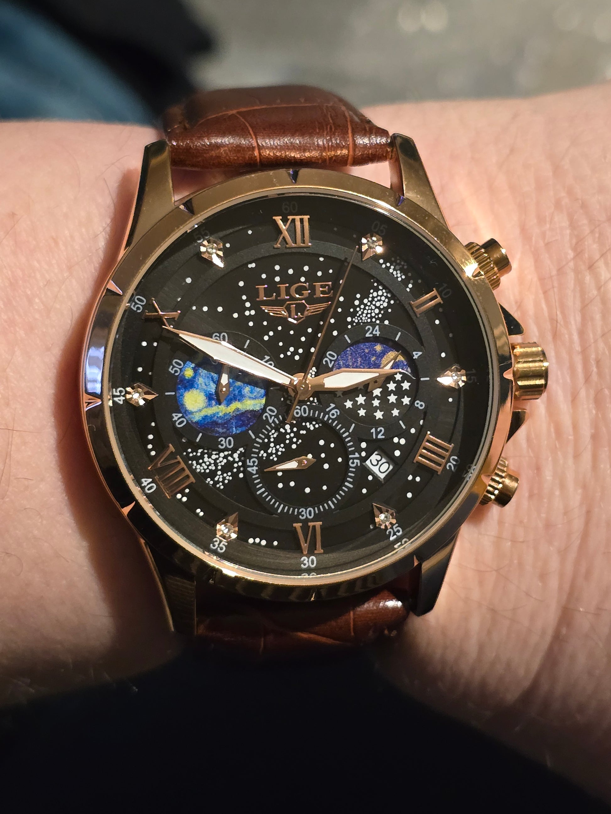 Expertly crafted with a classic design, the Lige Mens Chronograph Quartz Watch is a must-have for any watch enthusiast. Featuring a reliable quartz movement and chronograph functionality, this timepiece also boasts a vegan-friendly strap and a convenient date feature. Elevate your style and stay on schedule with this brand new, unworn watch.