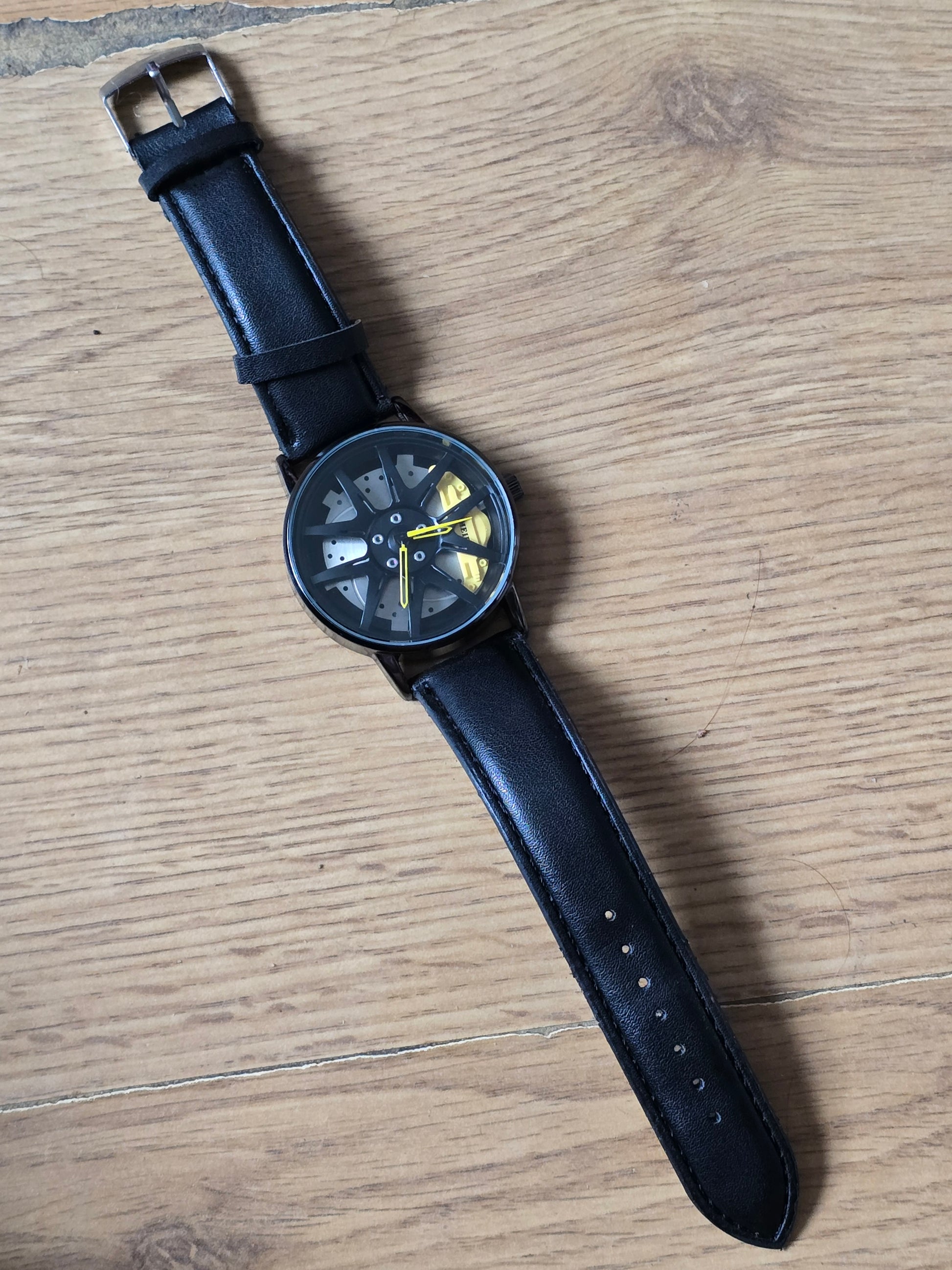 Mens Alloy Wheel Style Quartz Watch - Yellow - New - 1