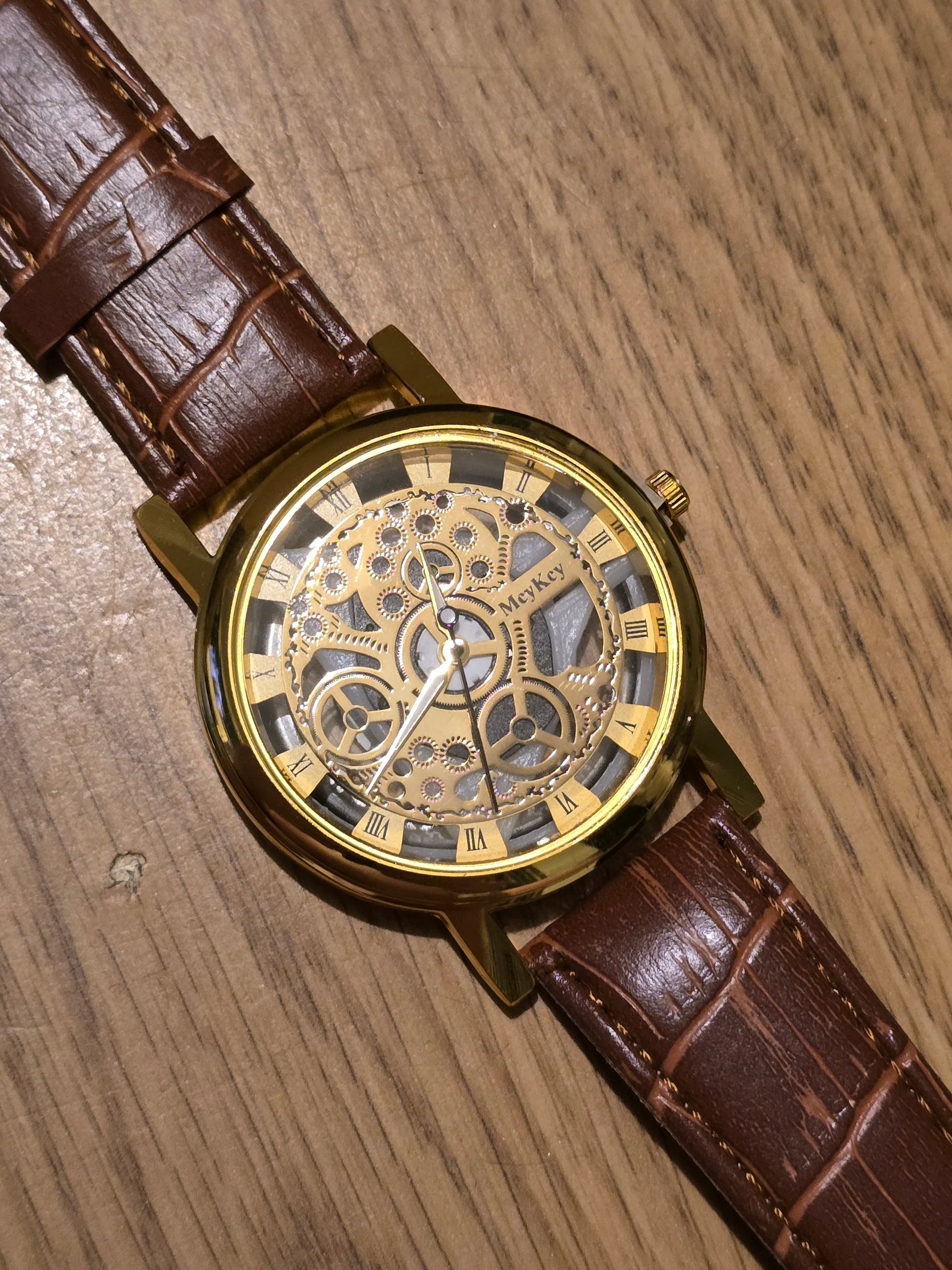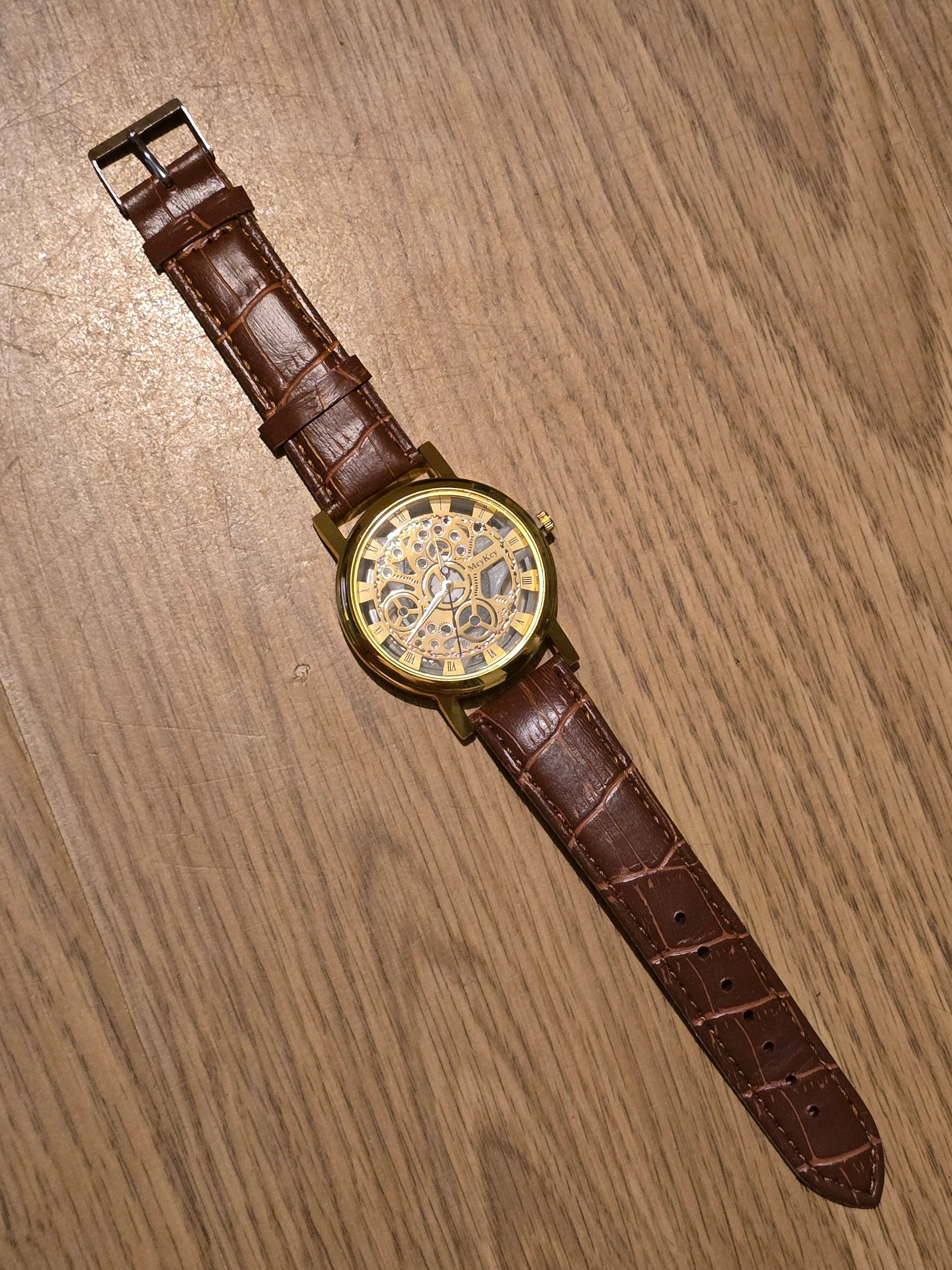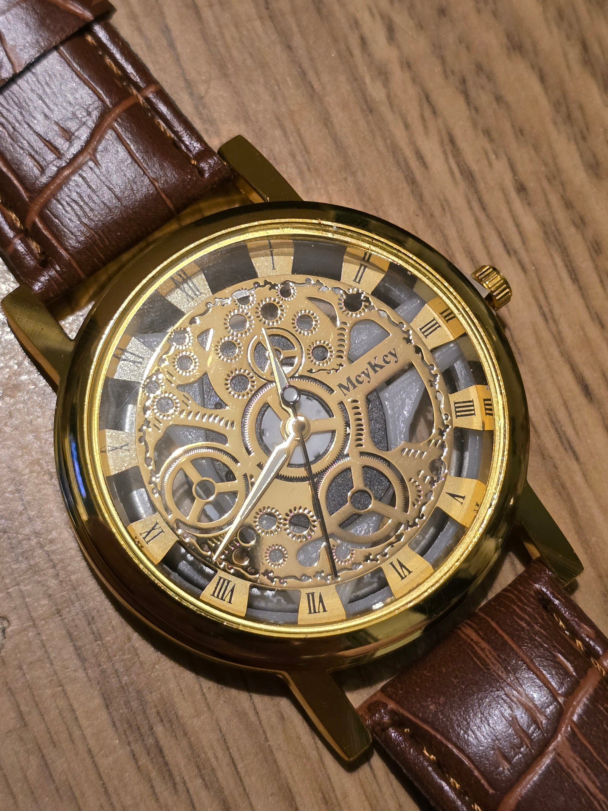 Get ready to rock and roll with the Mey Key Unisex Quartz Watch in gold! With its cool skeleton design and vegan friendly strap, this watch is more than just a timepiece. The reliable Quartz Movement ensures you'll never run late again, all at an unbeatable value. Get yours now!