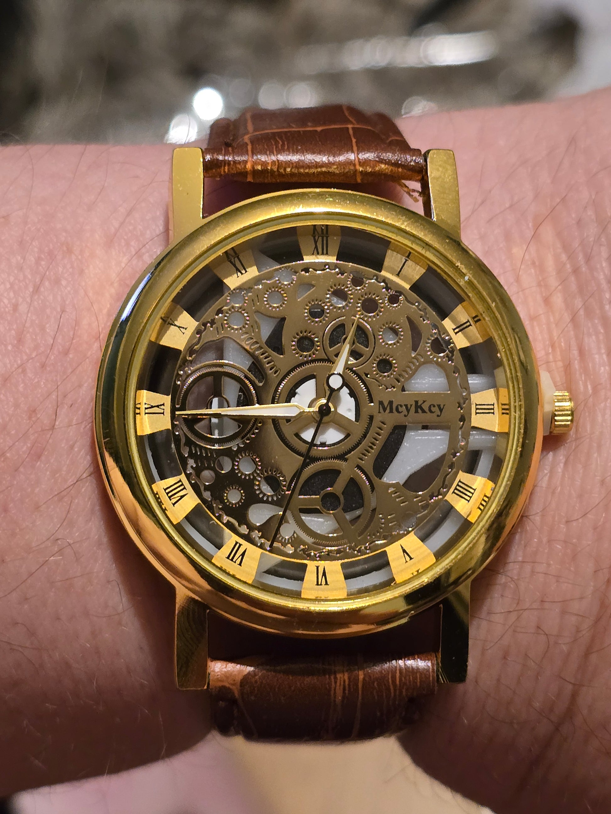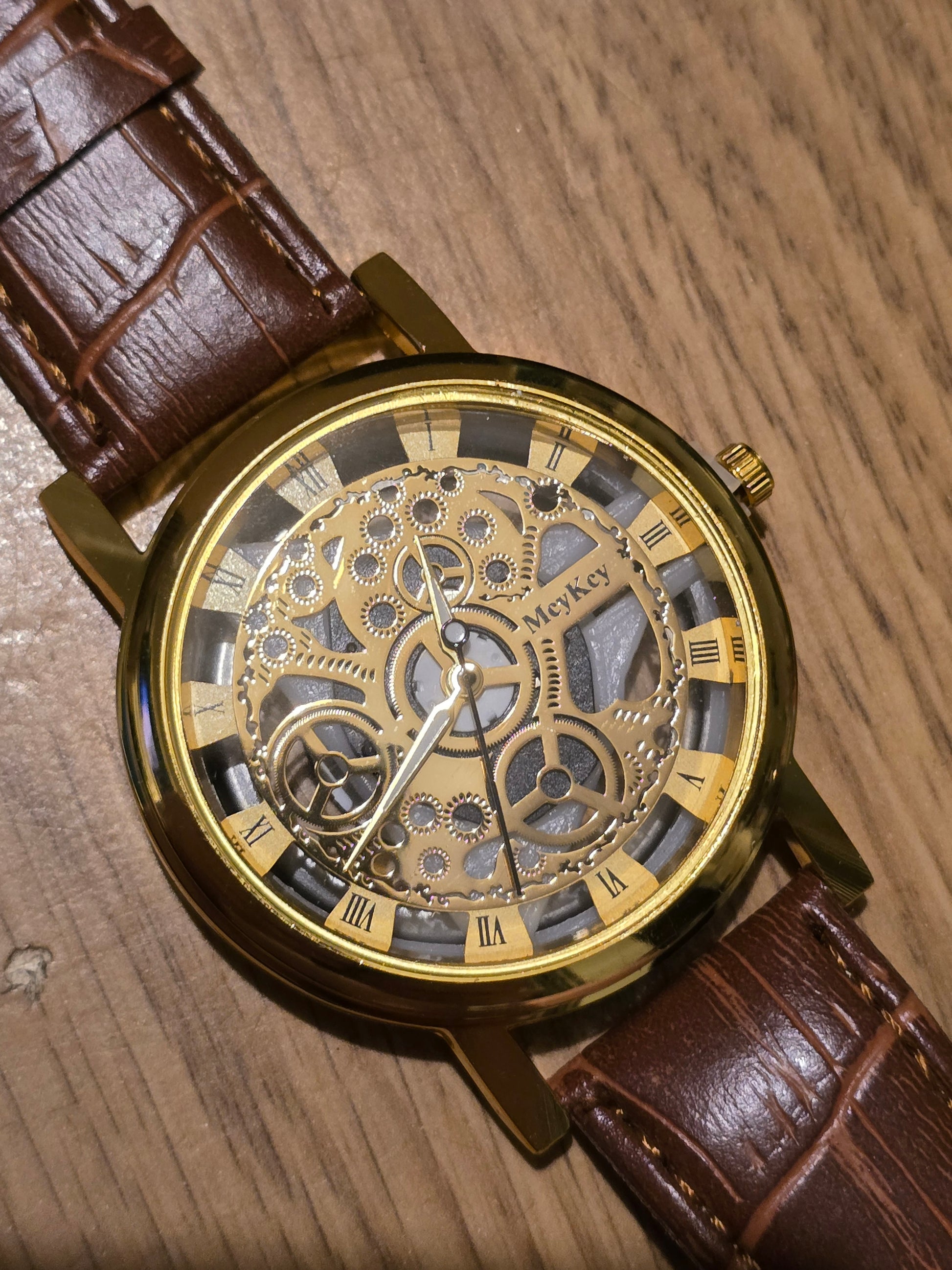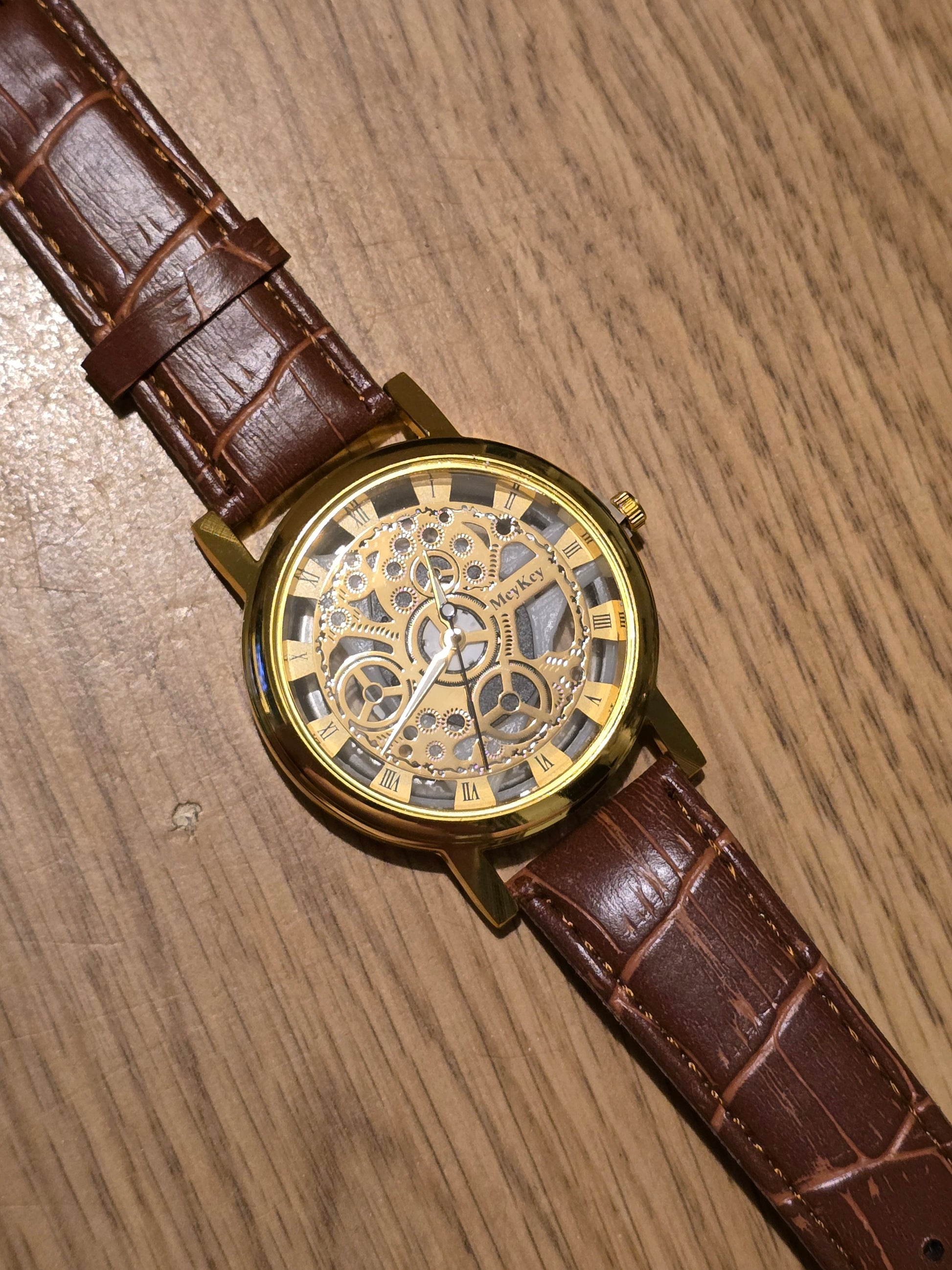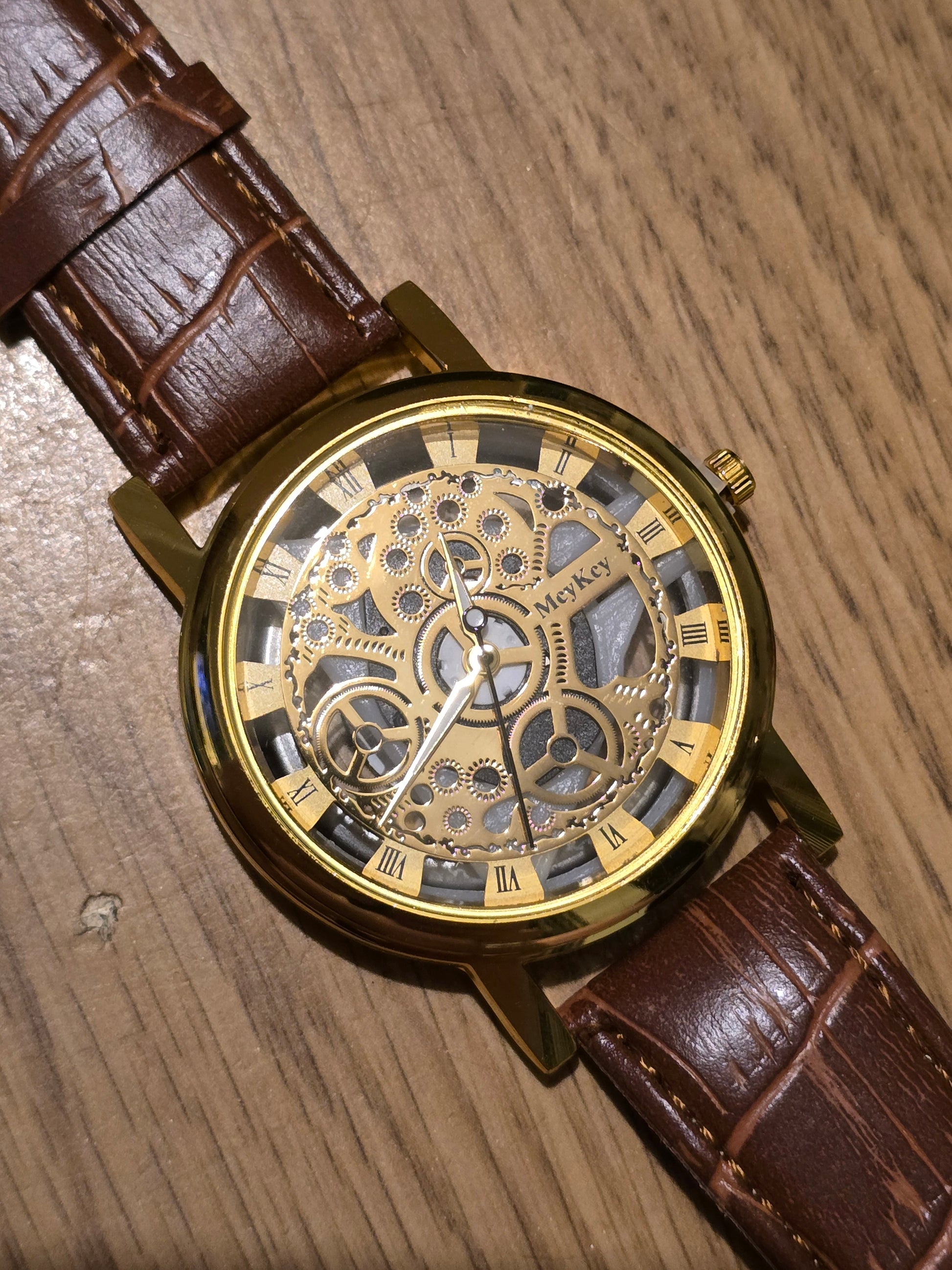 Get ready to rock and roll with the Mey Key Unisex Quartz Watch in gold! With its cool skeleton design and vegan friendly strap, this watch is more than just a timepiece. The reliable Quartz Movement ensures you'll never run late again, all at an unbeatable value. Get yours now!