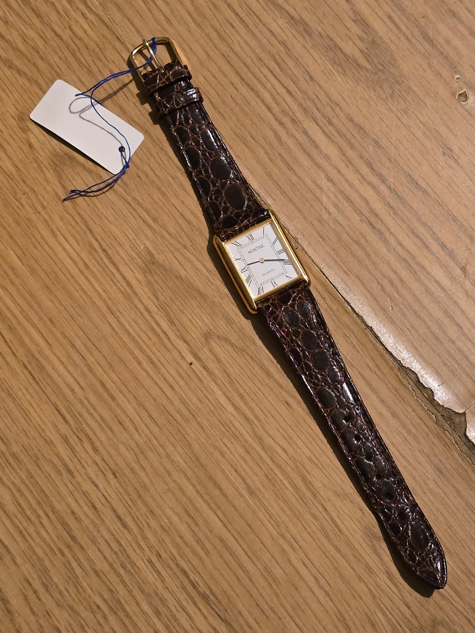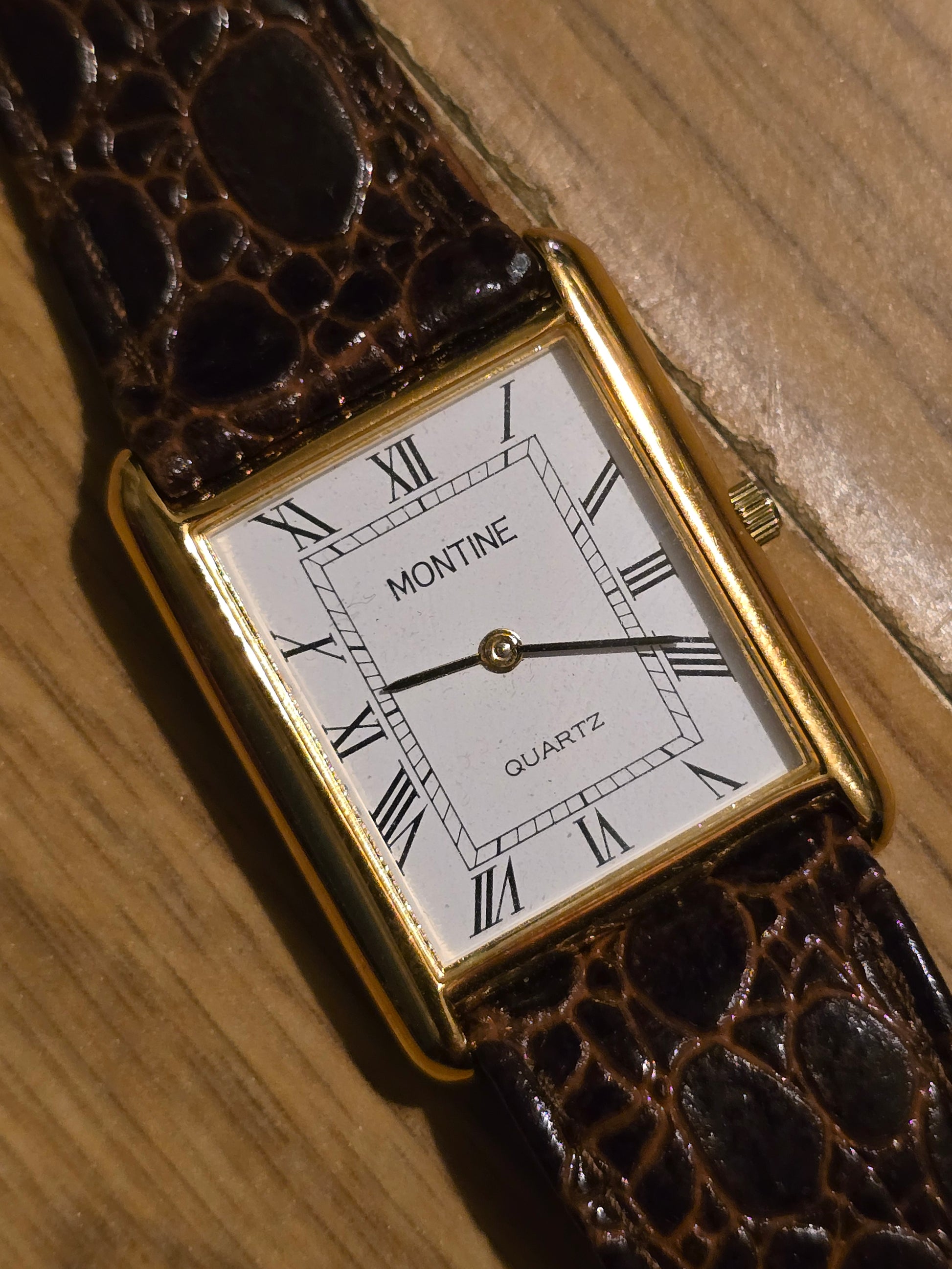 "The Swiss Made Montine Classic Ladies Quartz Watch features a vintage design that is both classic and timeless. This watch is New Old Stock and is powered by a reliable Swiss quartz movement, ensuring accurate timekeeping. The genuine leather strap adds a touch of elegance and durability. Enhance your style with this beautiful timepiece."