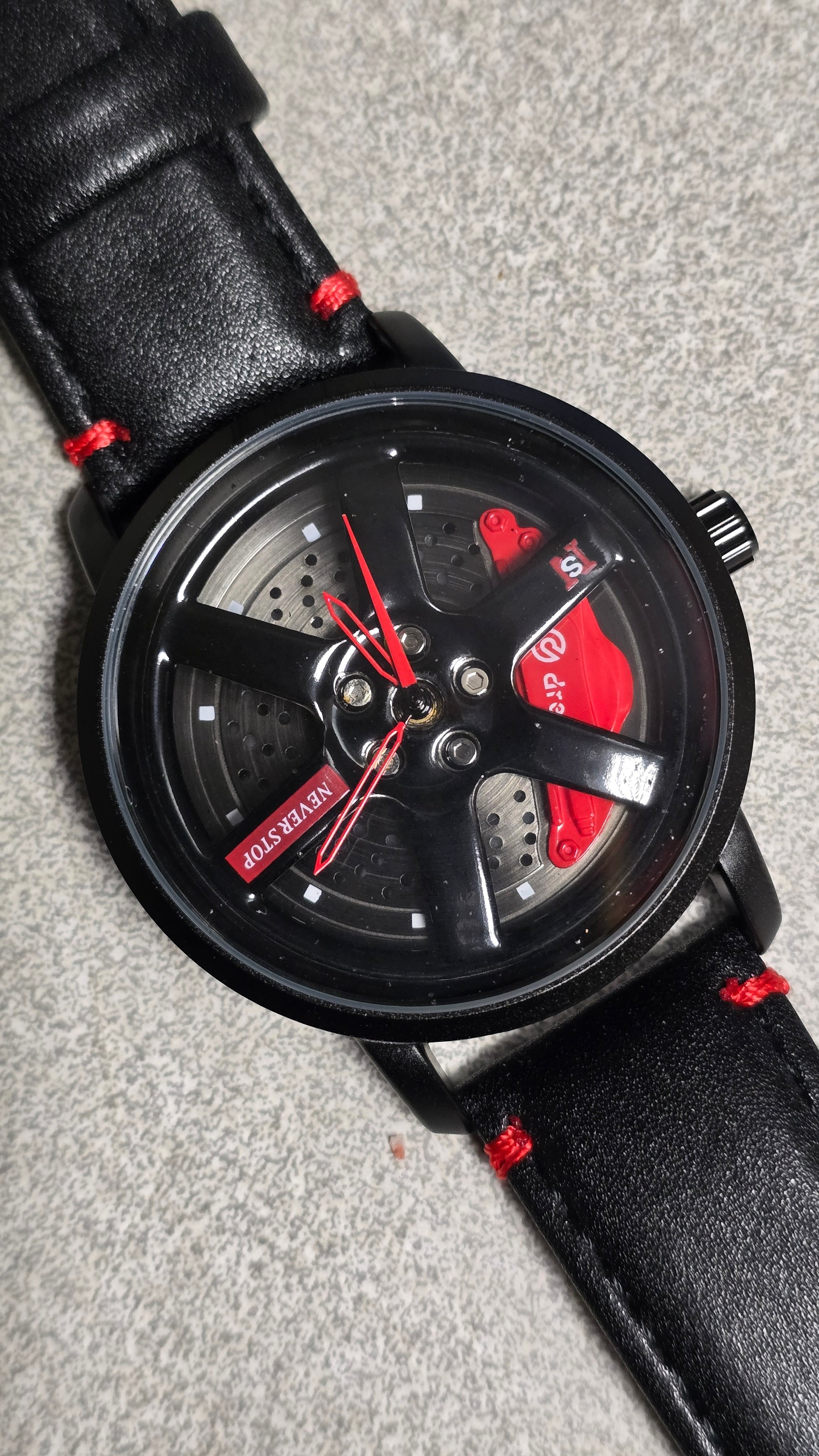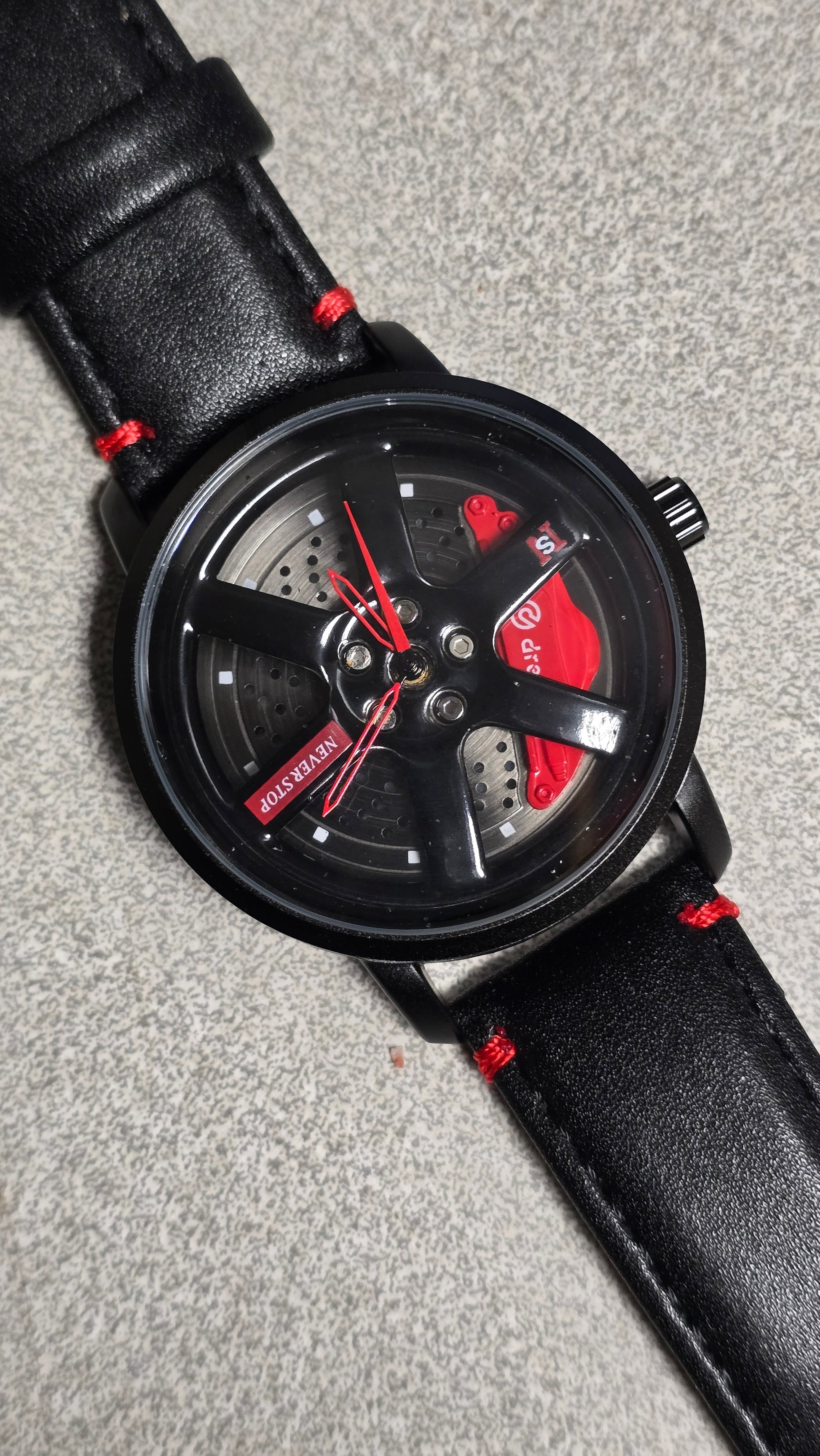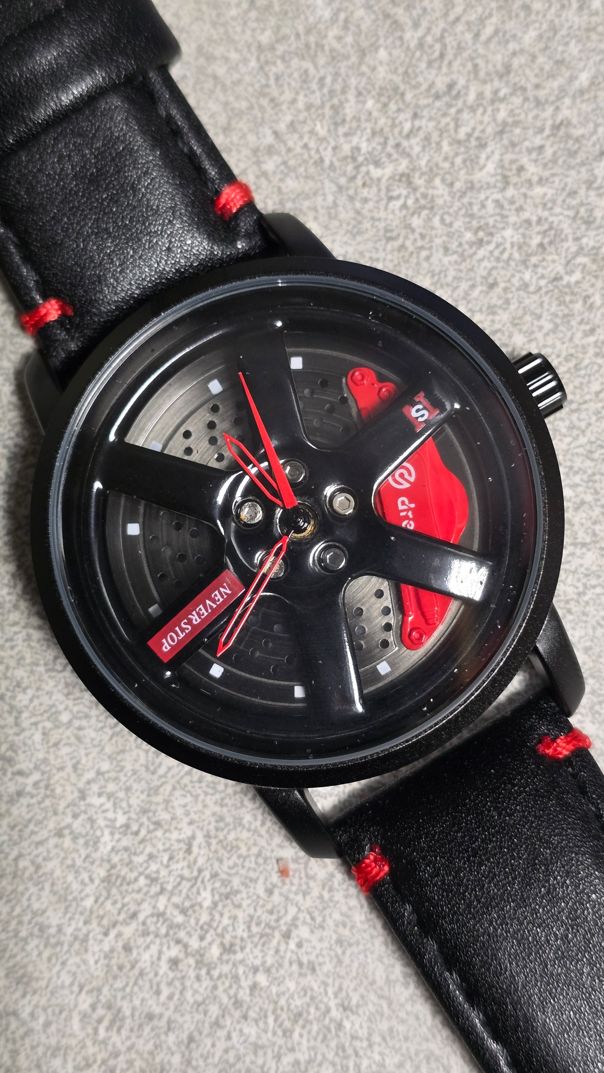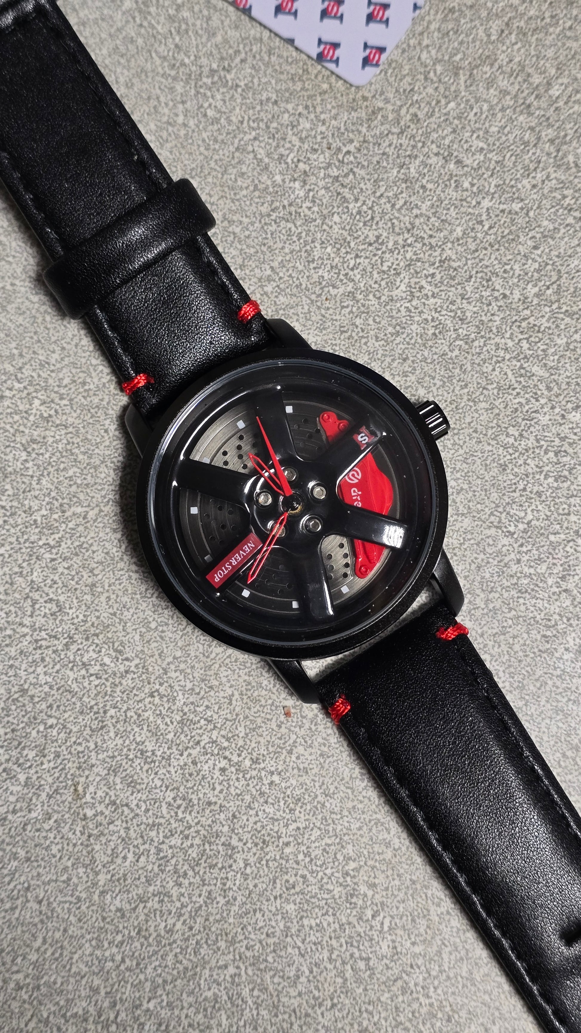 Never Stop - Mens Revolving Alloy Wheel Style Quartz Watch - Red - New