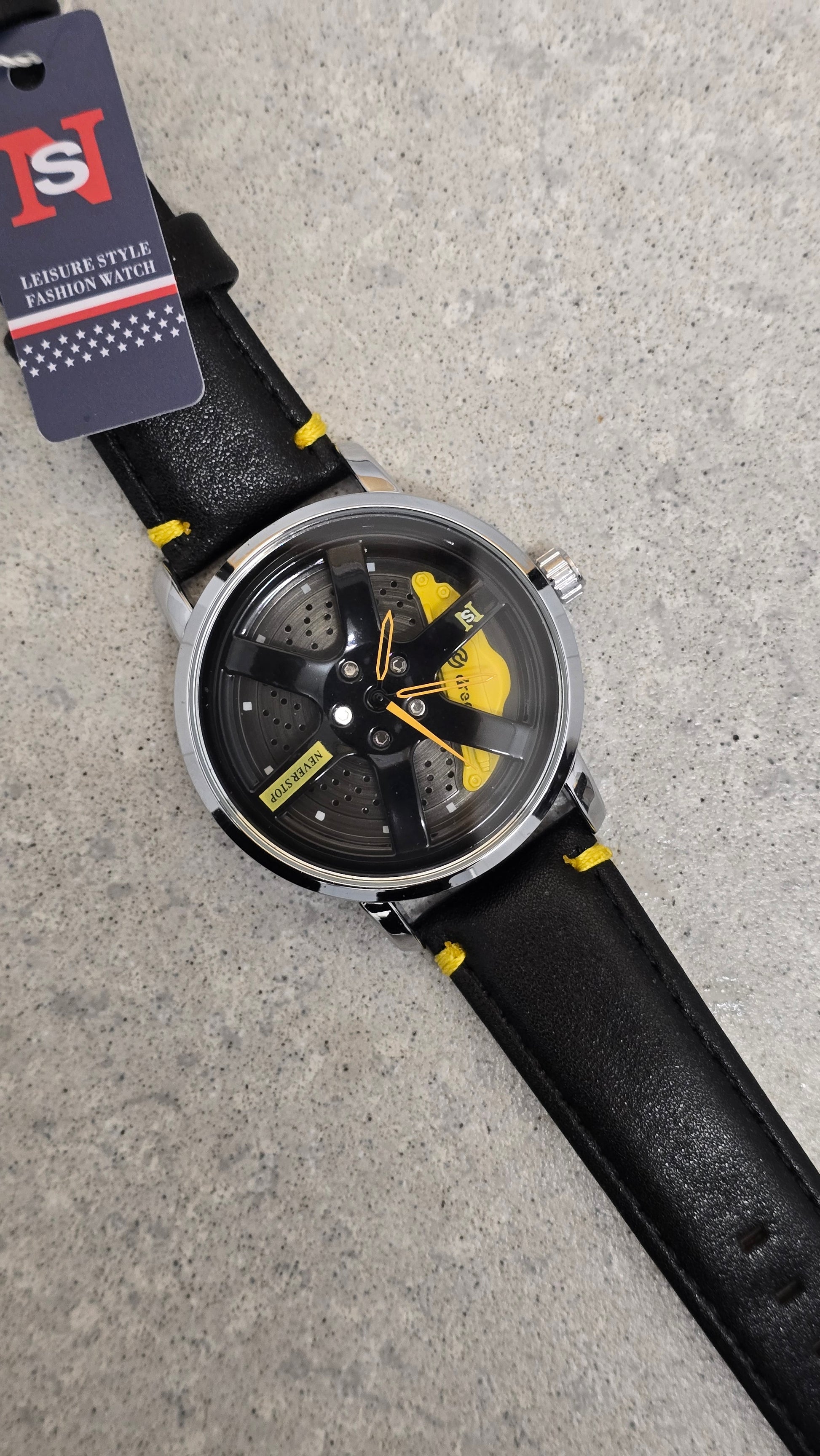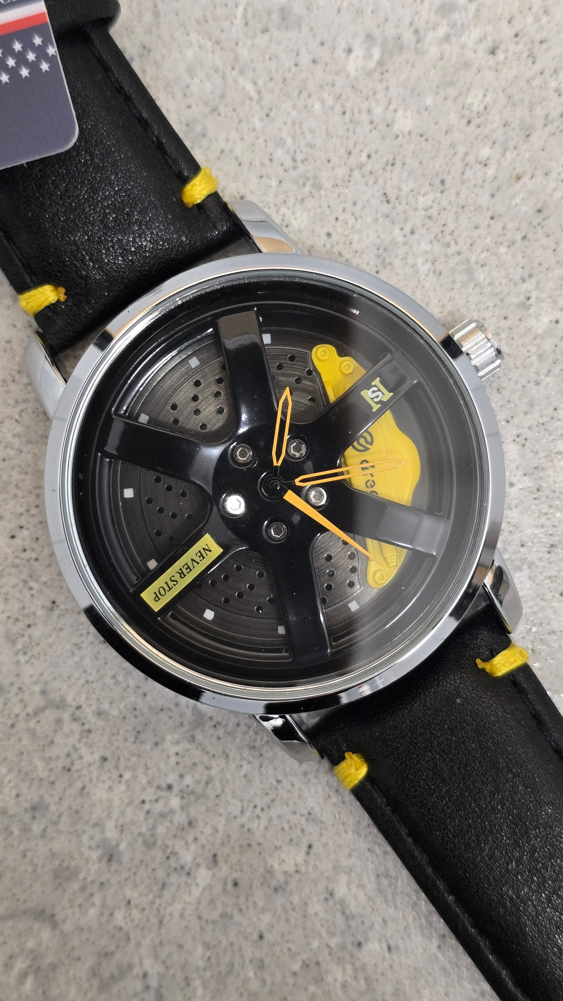 Never Stop - Mens Revolving Alloy Wheel Style Quartz Watch - Yellow - New