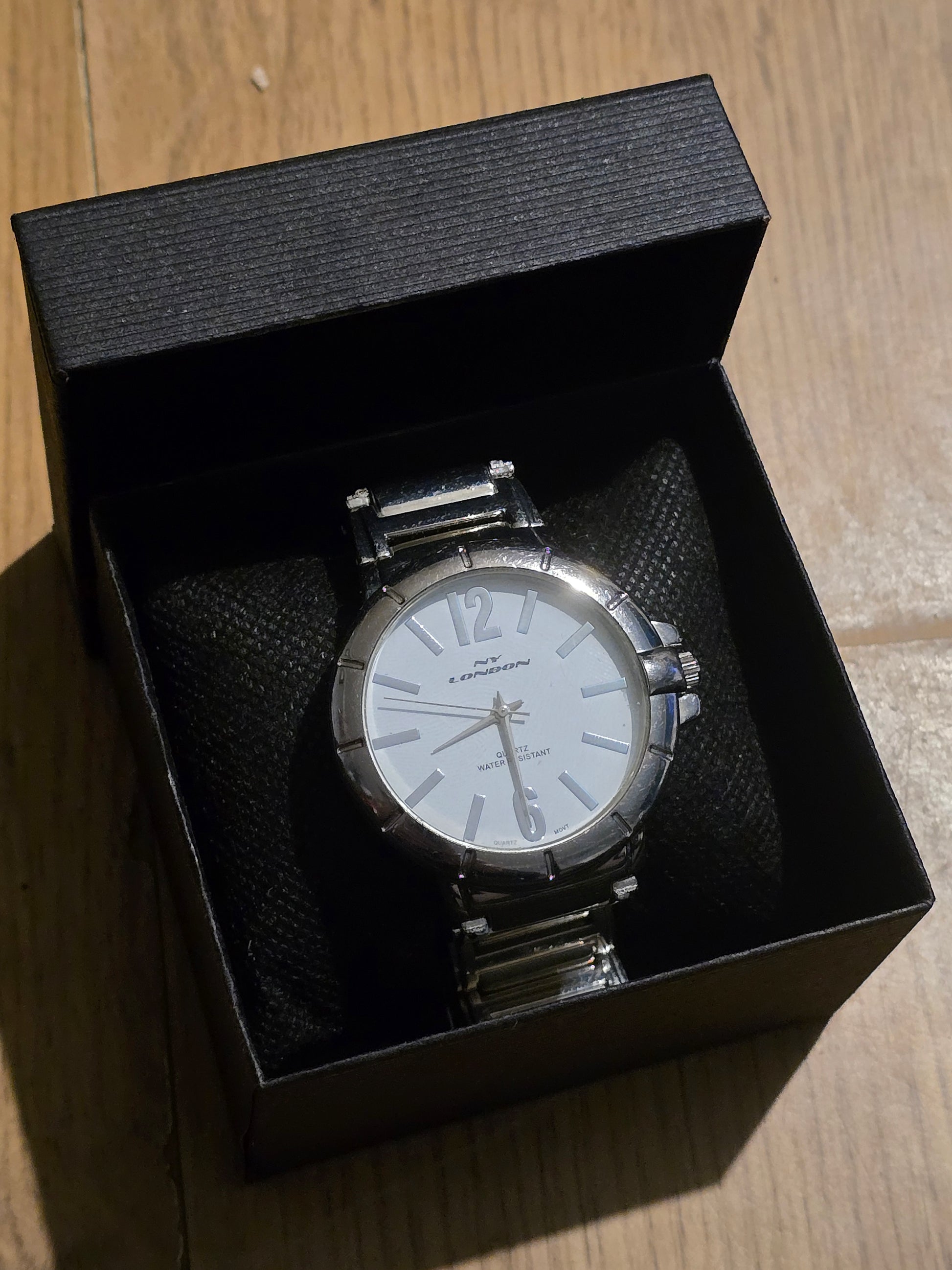 Elevate your style with NY London's classic, reliable Quartz watch. Its stainless steel strap adds a touch of sophistication to any outfit. With precise Quartz movement, this timepiece is not only a fashion statement but also a practical choice. Own a piece of luxury with NY London.