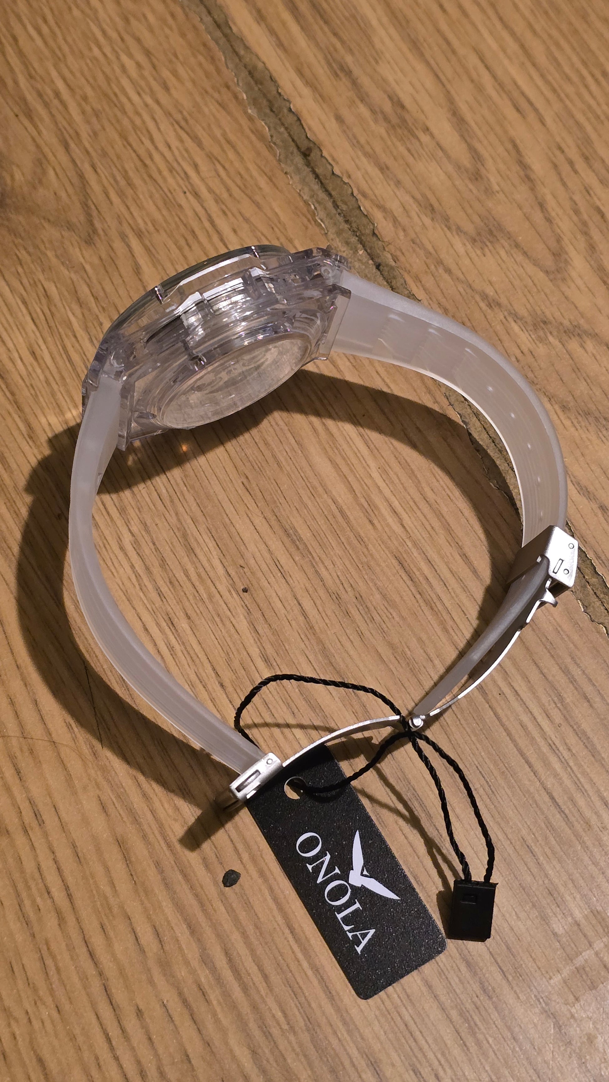 Introducing the Onola Mens Automatic Self-Winding Watch. With its modern design and automatic movement, this watch is both stylish and functional. Complete with a durable silicone strap and metal clasp, it's the perfect accessory for any man on the go. (Timekeeping just got a whole lot cooler.)
