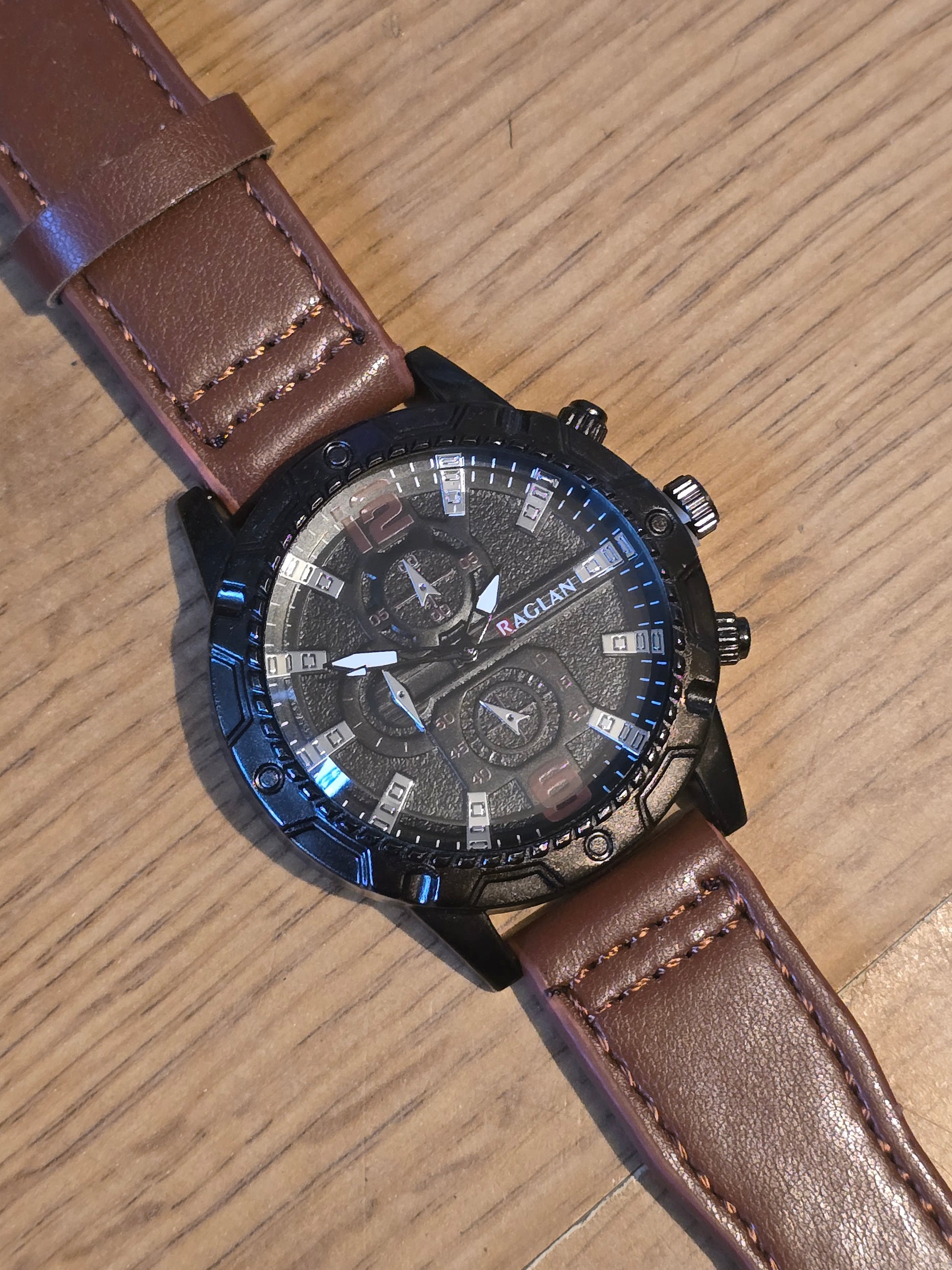 "Take on any adventure with the Raglan Mens Quartz Watch. Its rugged design and reliable quartz movement ensure durability and precision, while the vegan friendly strap adds an eco-friendly touch. Embrace the challenge and conquer the day with this bold timepiece!"