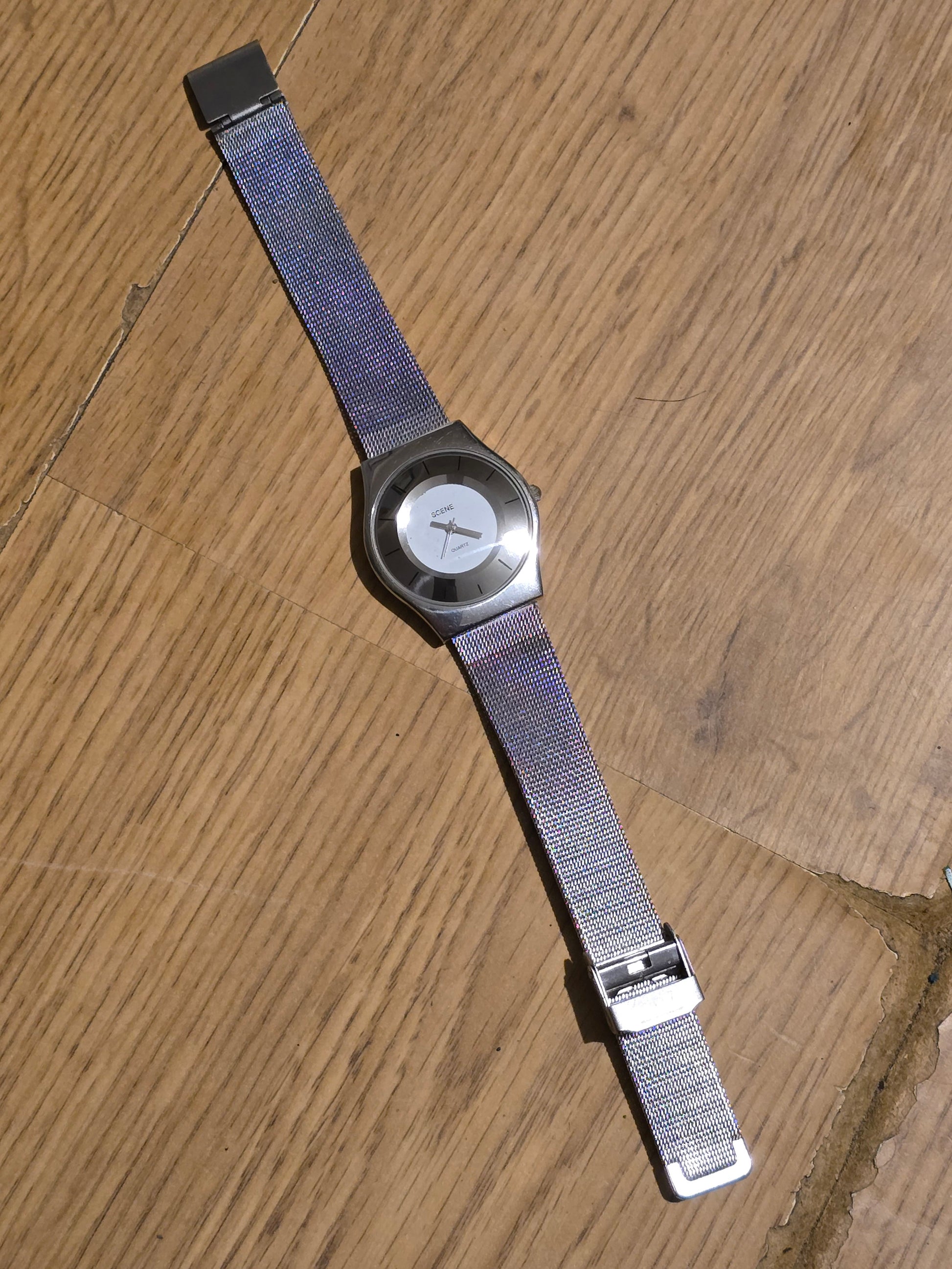 Experience style and functionality with the Scene Unisex Quartz Dress Watch. With a sleek modern design, this watch is the perfect accessory for any outfit. The stainless steel mesh strap adds a touch of elegance while the reliable Quartz Movement ensures accurate timekeeping. Stay on schedule with the new battery that has been fitted.
