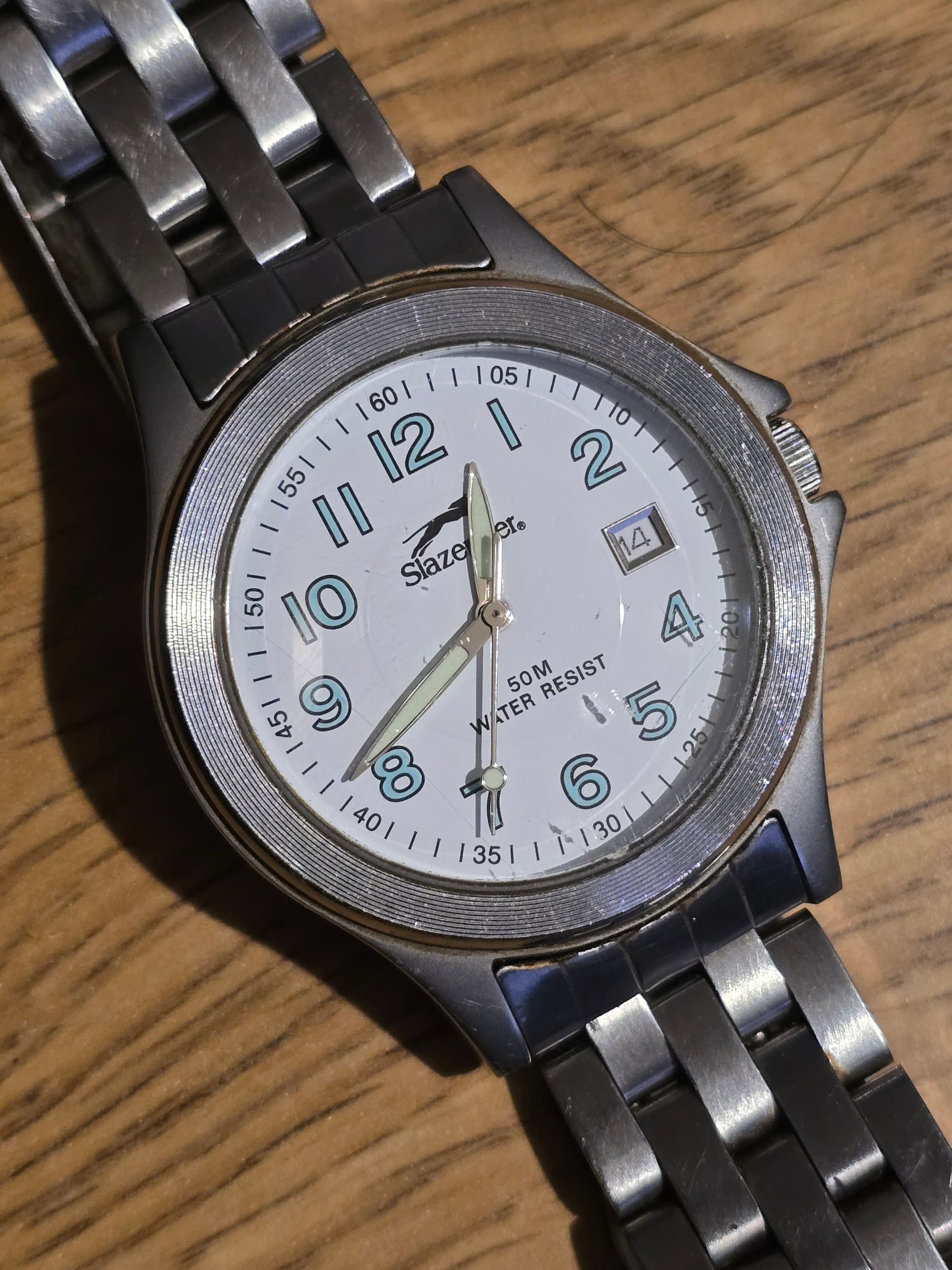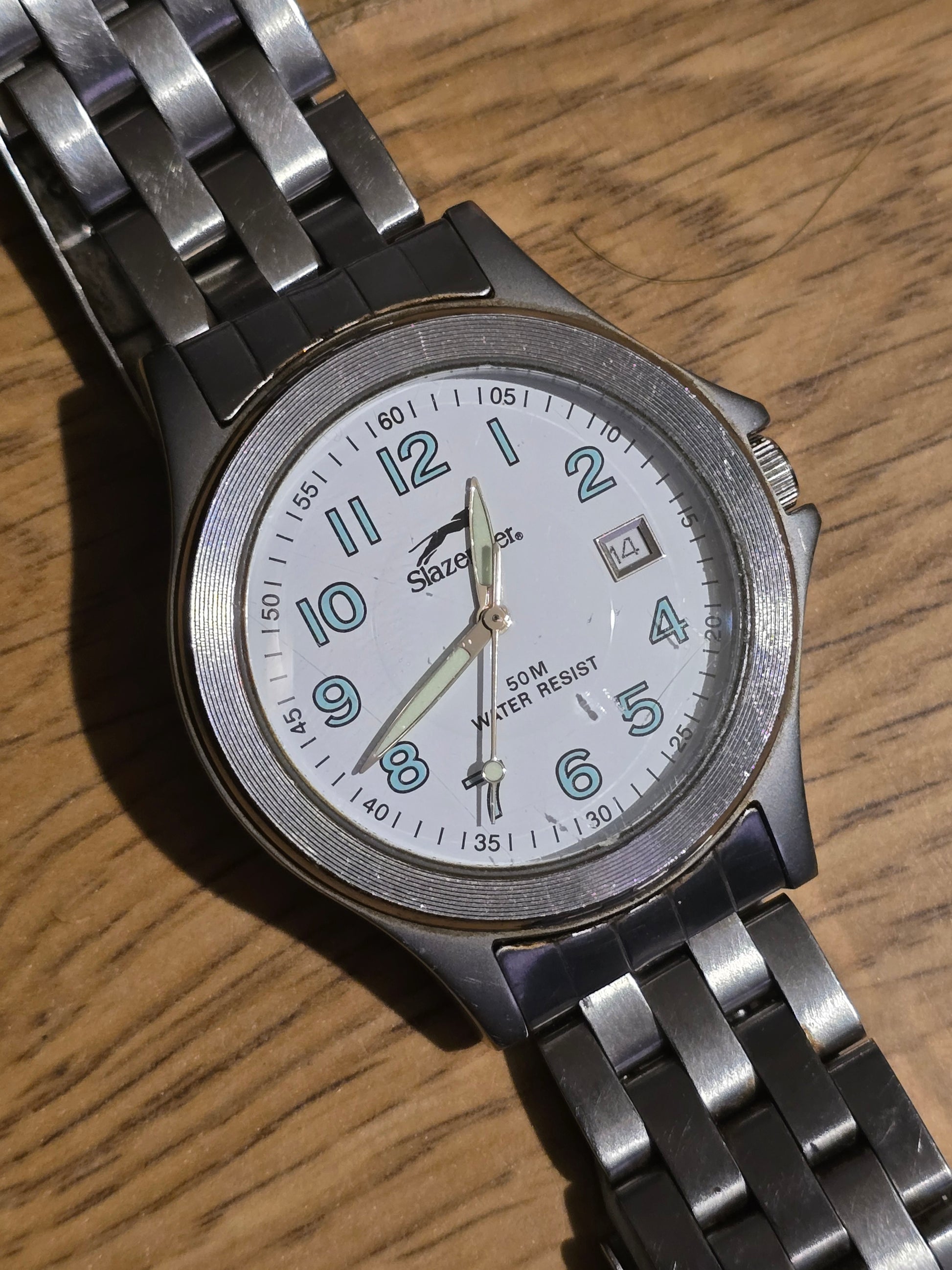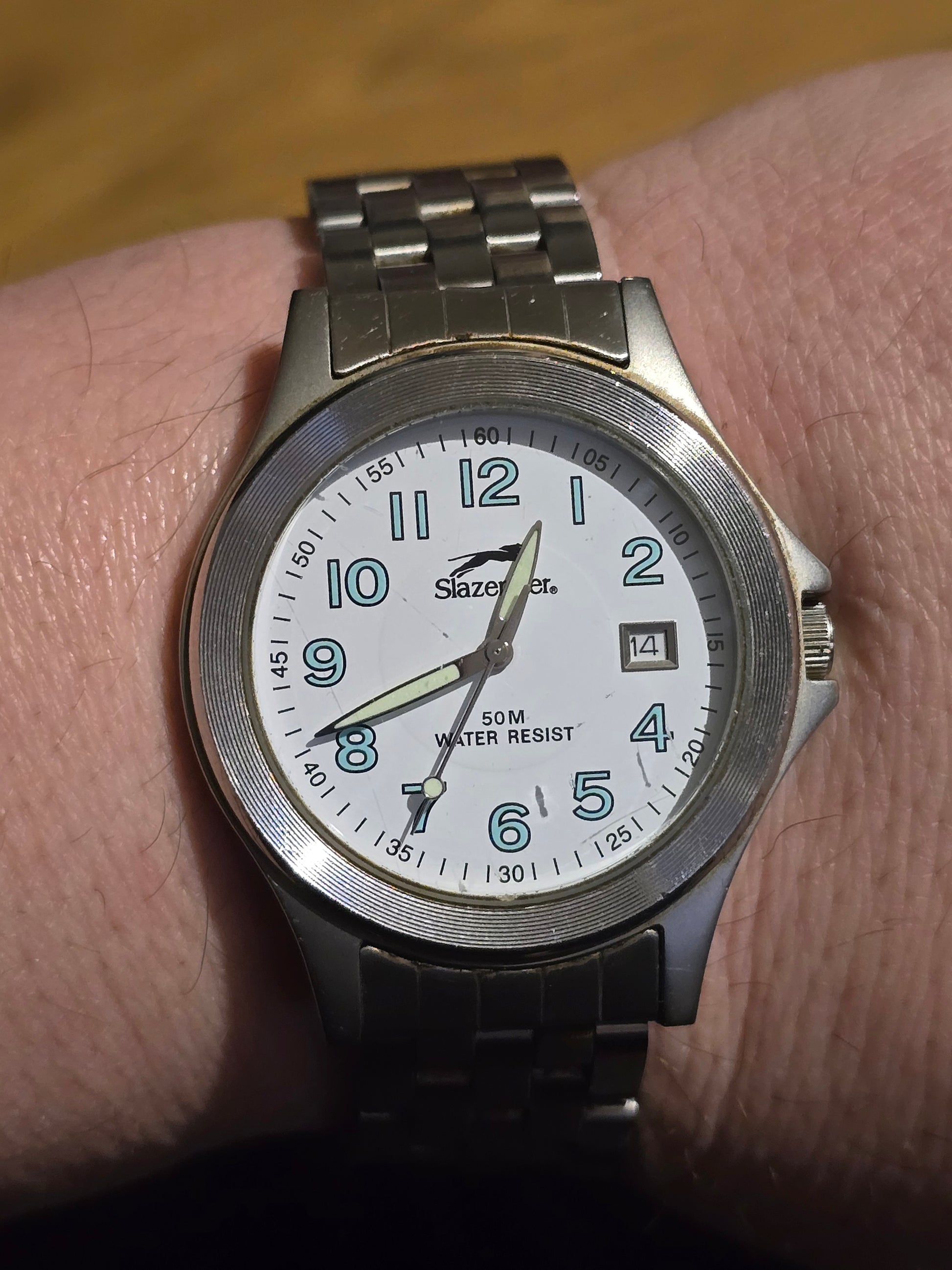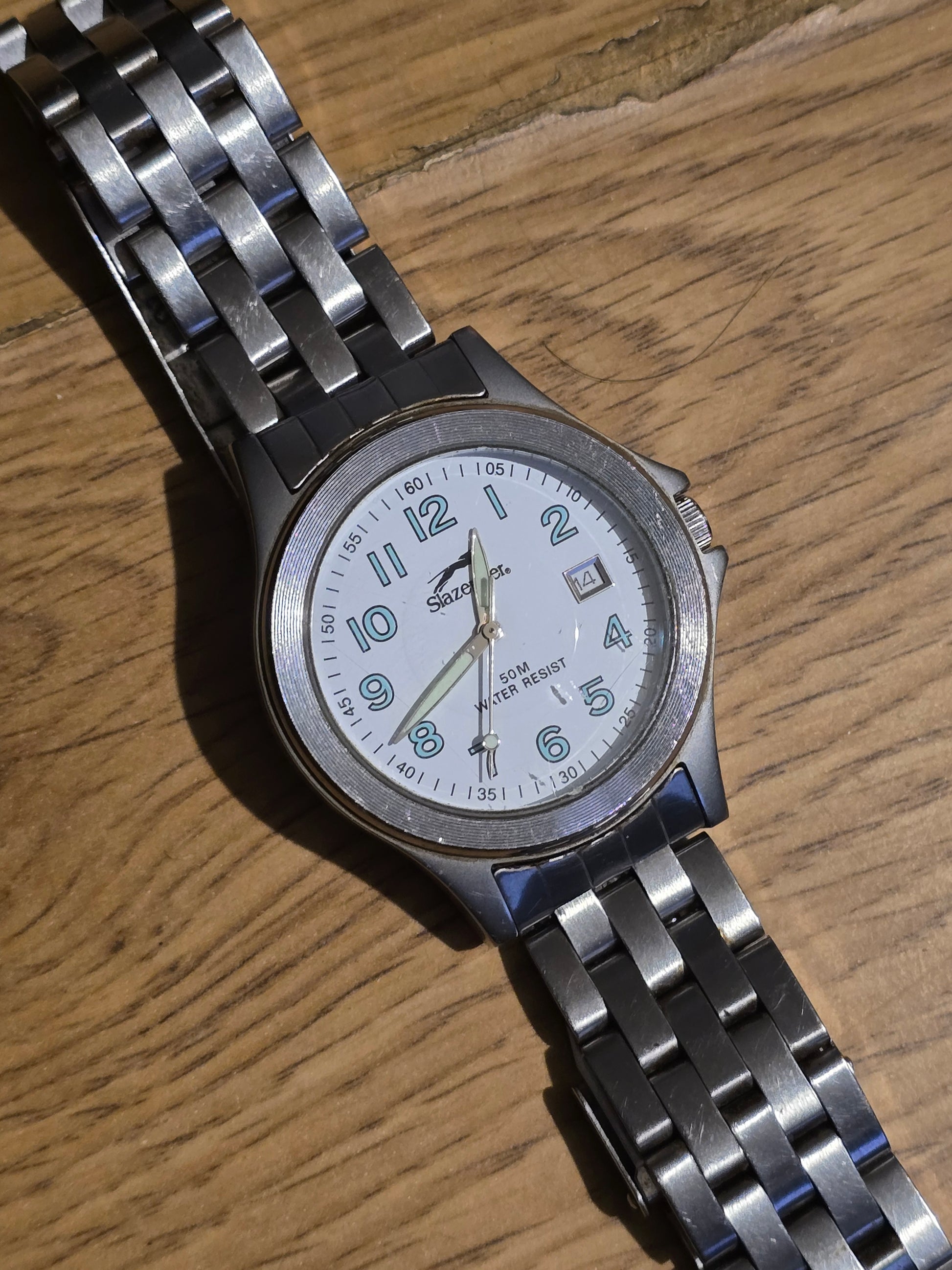 "Score fashion points with this pre-owned Slazenger Mens Quartz Watch. Its classic sports looks and durable stainless steel strap make it perfect for any occasion. Plus, with its reliable Japanese quartz movement and water resistance, you'll never miss a beat!"