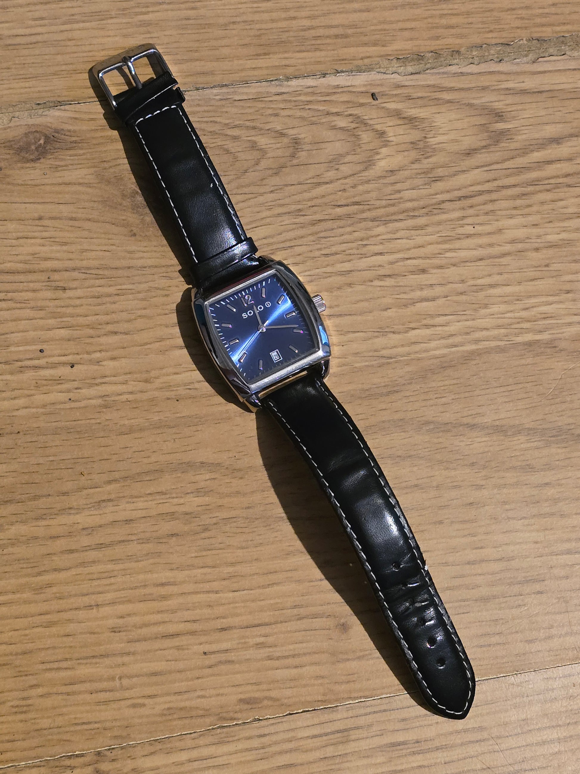 "Stay stylish with this playful pre-owned Solo Mens Quartz Watch. Its modern design and classic looks are complemented by a reliable Quartz Movement and a convenient date display. Plus, a new battery has been fitted recently for added convenience!"